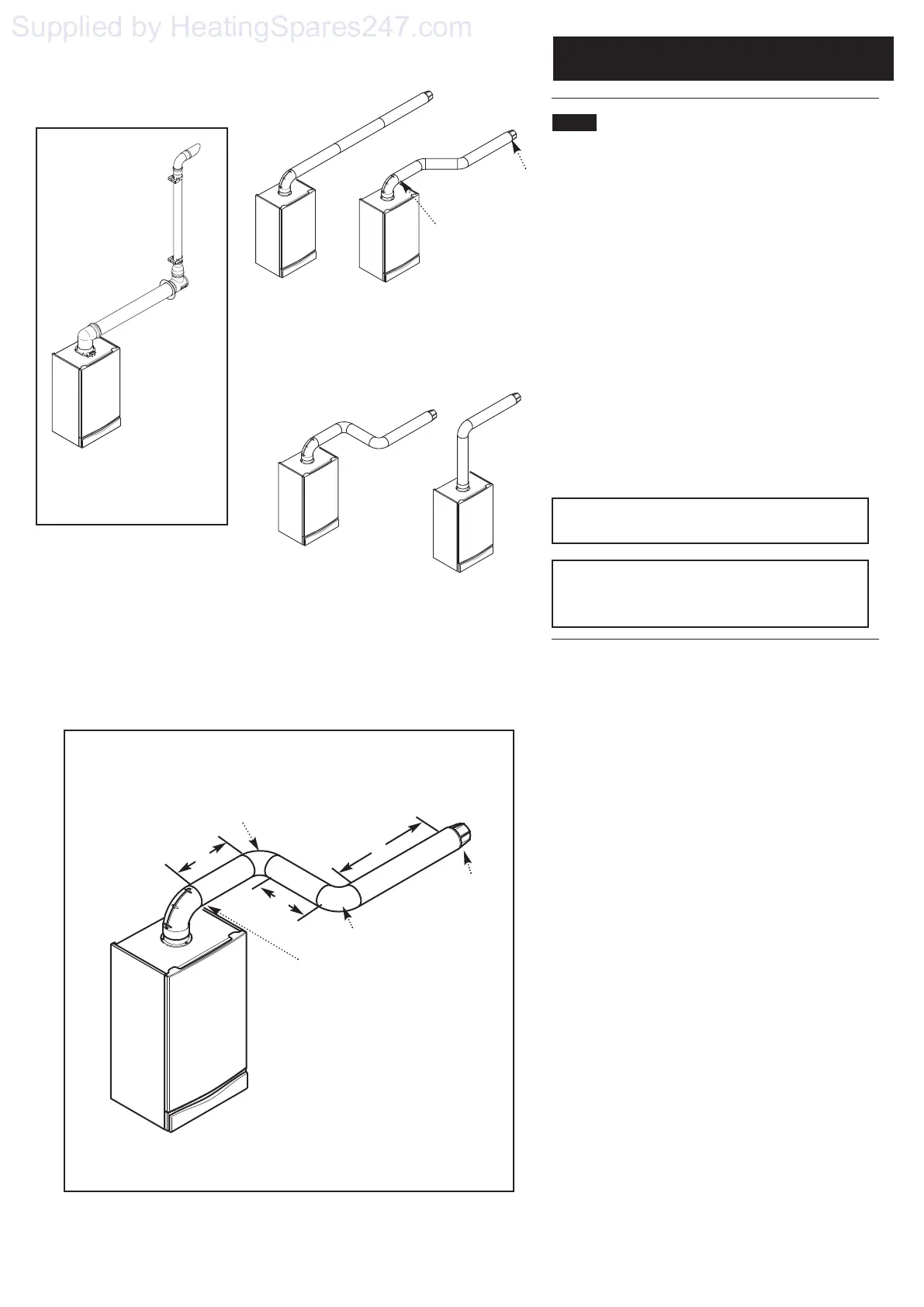 NOTE: Horizontal flue pipes should always be installed with at least a 1.5° fall