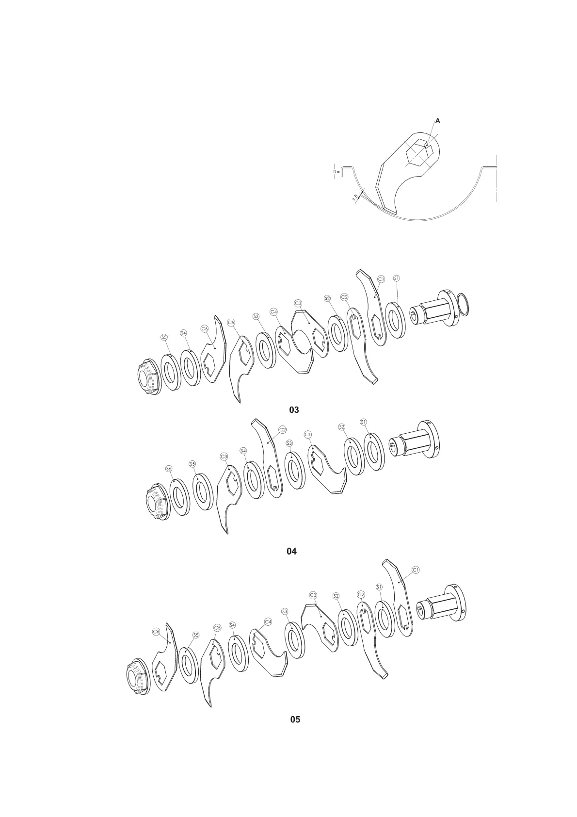 Observera att varje kniv är utrustad med en tunga (A) inuti en