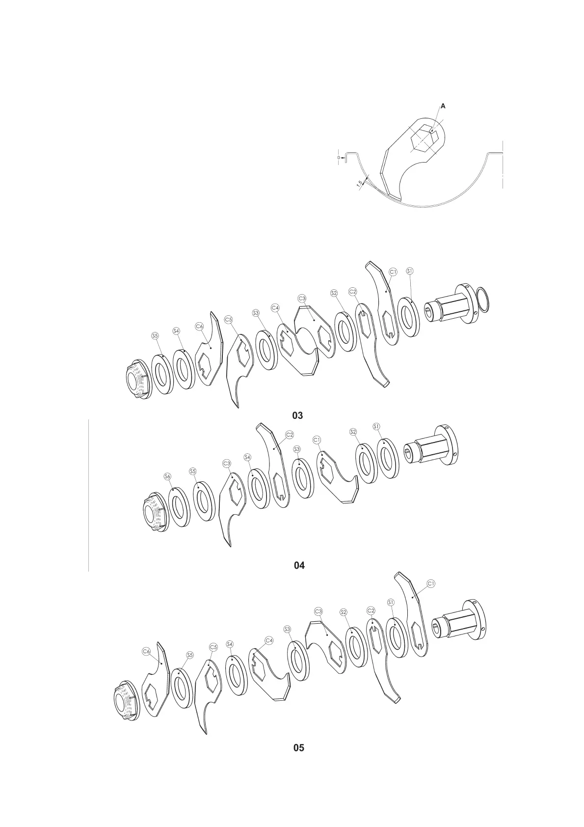 Obsérvese que cada cuchilla va provista de una lengüeta ( A ) en