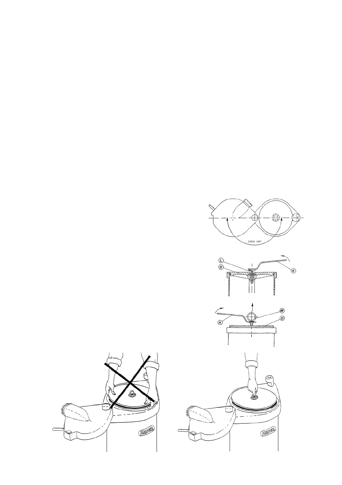 limite supérieure maximum, couvercle du cylindre ouvert 180º . A