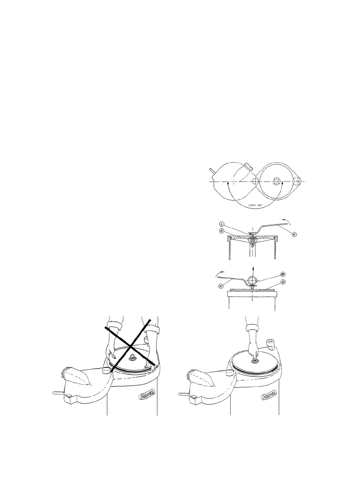 Cuando el pistón haya llegado al final superior de su recorrido, abra la tapa y accione la rodillera hacia la