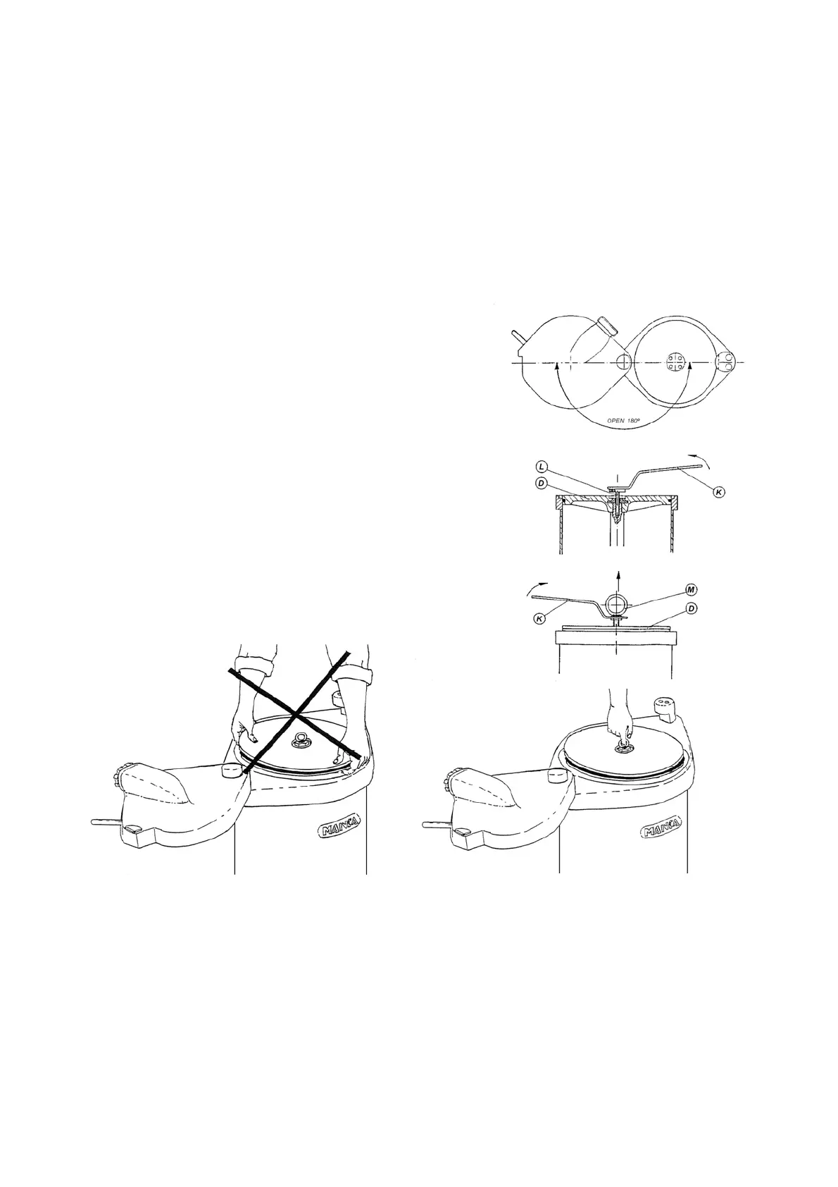 dæksel stående åbent, 180º. Dernæst, ved hjælp af optagelsesnøglen (K), der leveres sammen med maskinen,