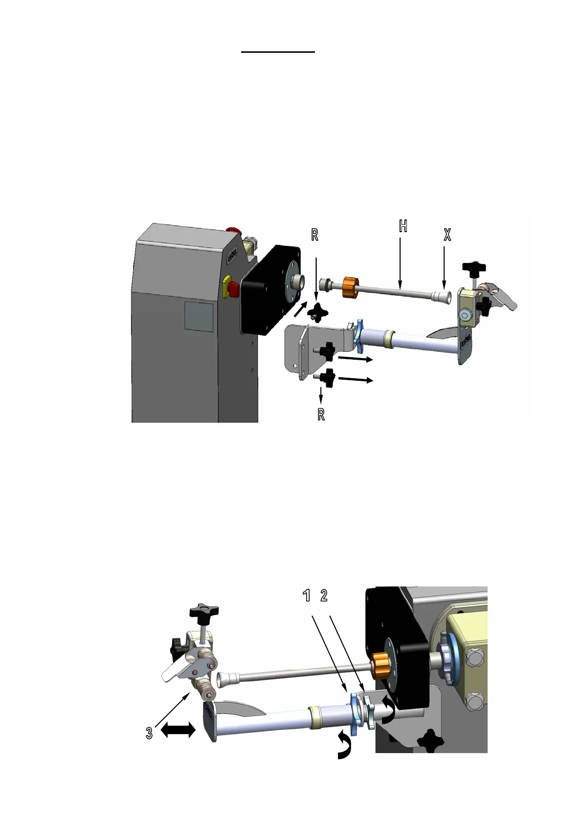 Una vez acoplado, volver a roscar los pomo (R) y lo primero a realizar e