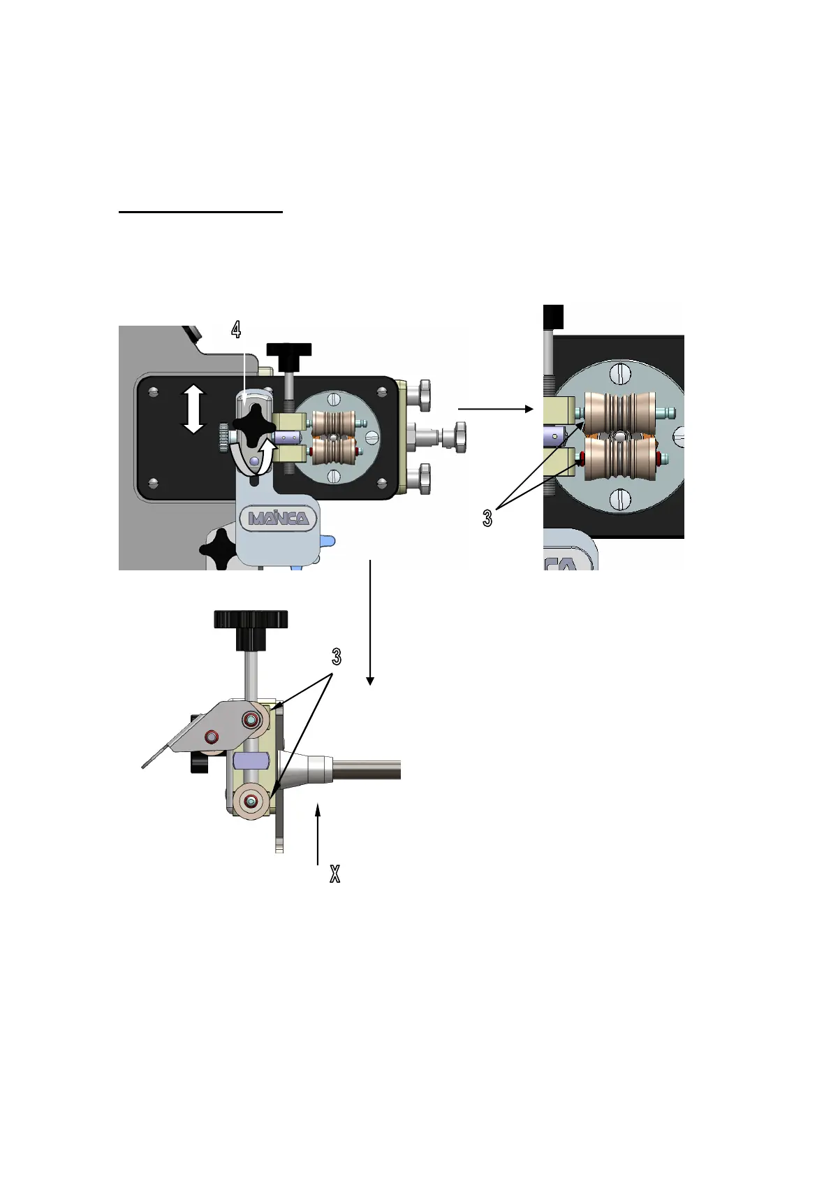 A continuación, se debe regular la altura y centrado de los rodillos (3) con respecto al