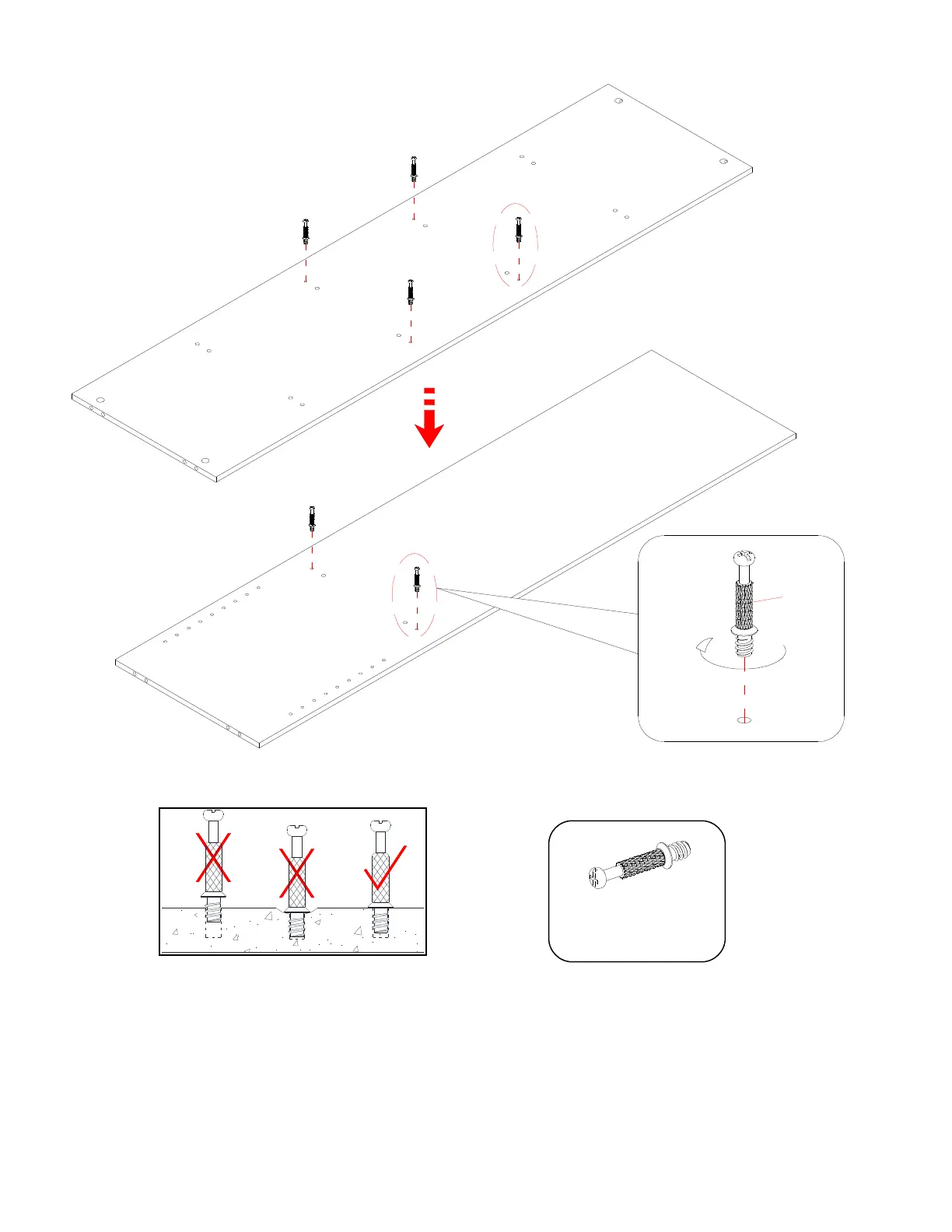 3. Securely screw six Cam Bolts (2) into the designated small holes on the Large Divider Panel (E) on