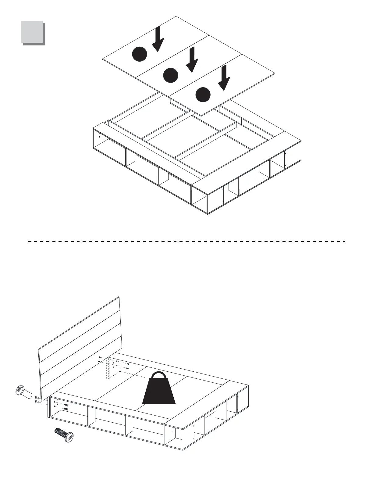 Attach the Headboard assembly to the platform bed assembly using the hardware shown below.