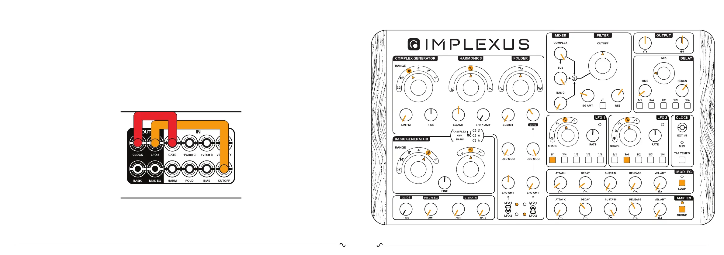 The LFO 2 output is patched to the VCF CUTOFF input. Both LFO 2 and MOD EG can now control the VCF CUTOFF.