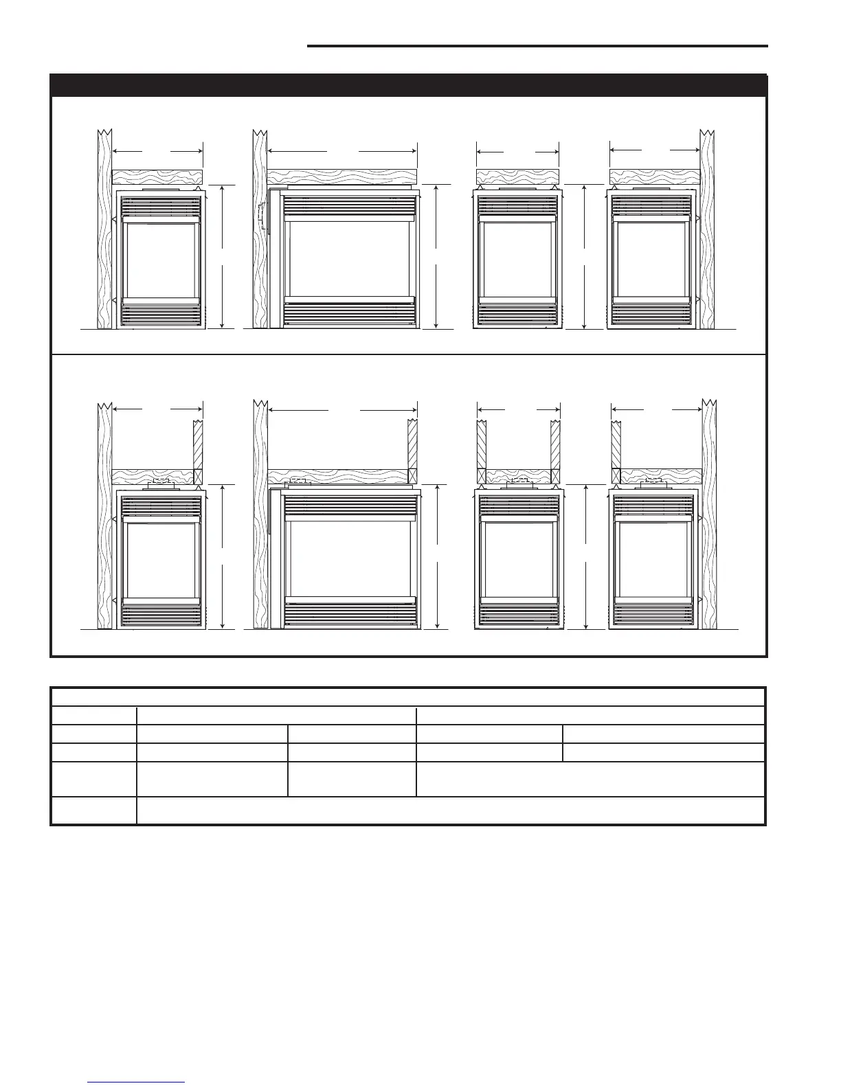 Fig. 2b Fireplace framing dimensions—360DVS3/ 360DVSL/ 360DVSR