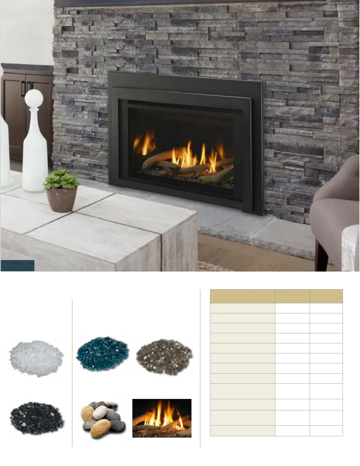 Contemporary glass firebed Optional* N/A
