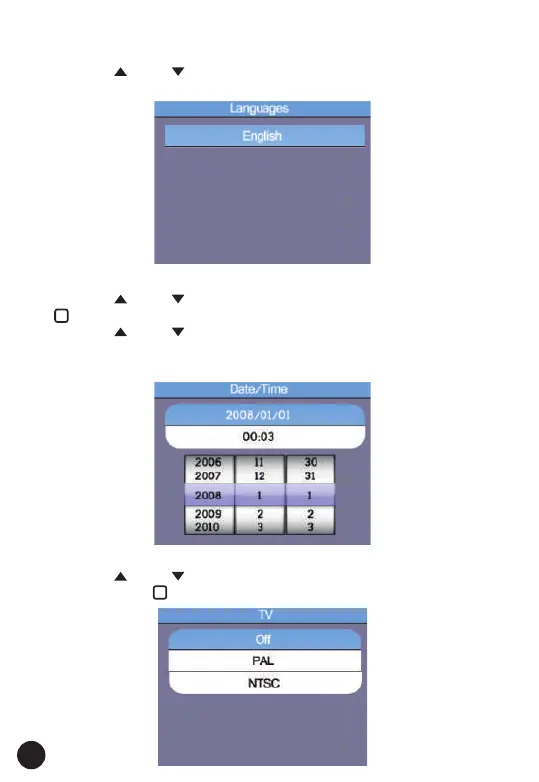 • Press the " " and " " Button to select the Language.