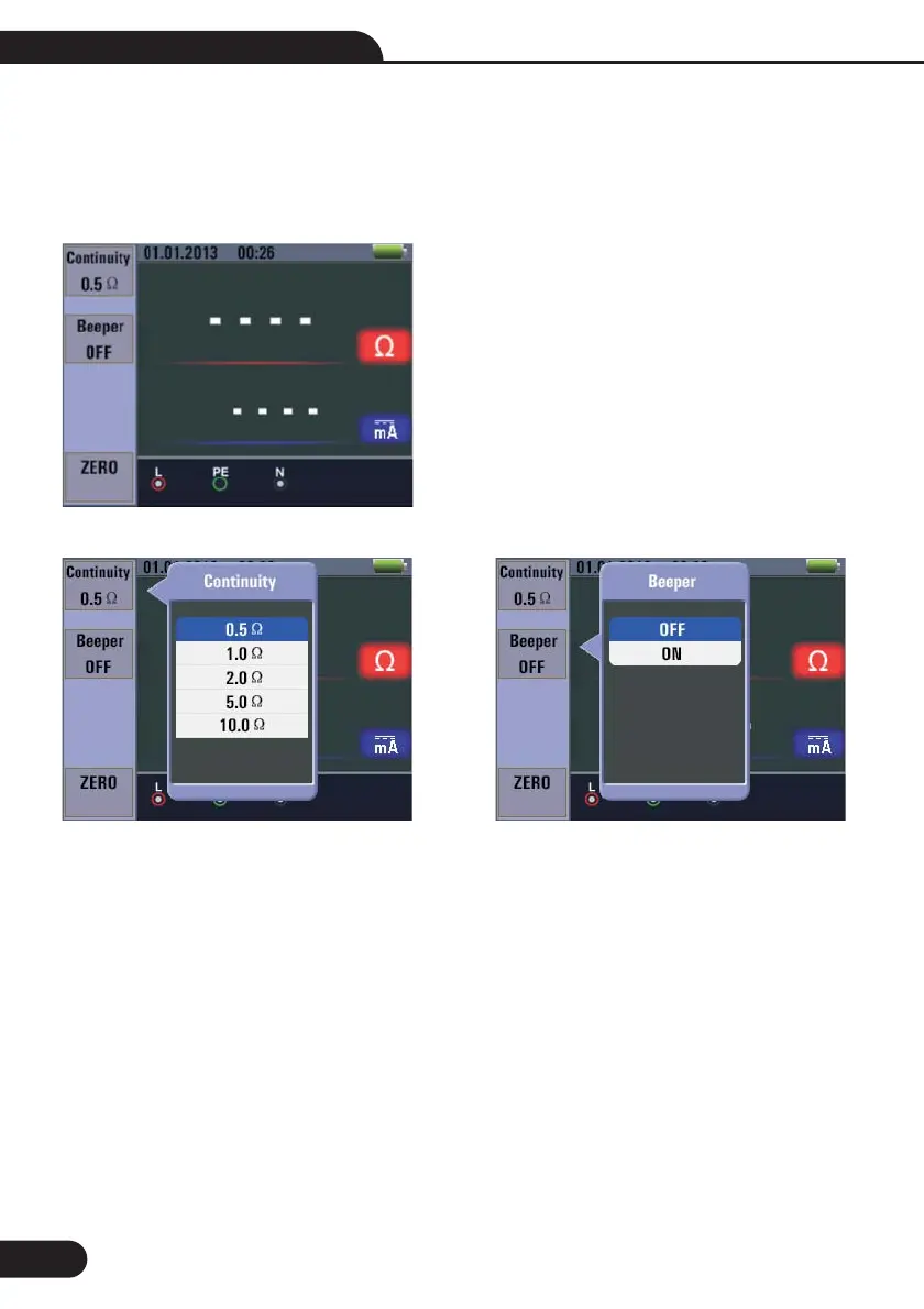 Pop-up and shutdown LOW OHM menu , Shutdown mode is activated when the user selects.