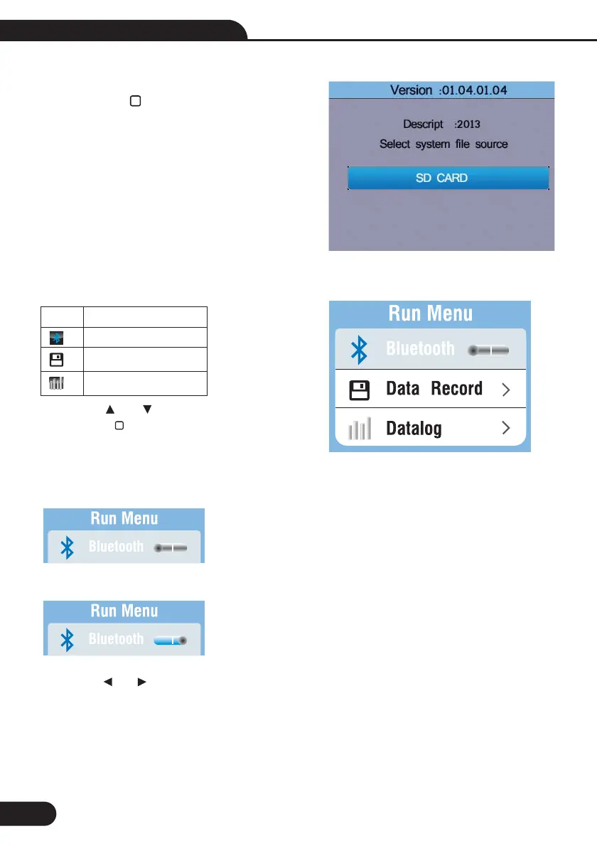 Press the and button to select the on or off bluetooth , press the ESC button to esc and save.