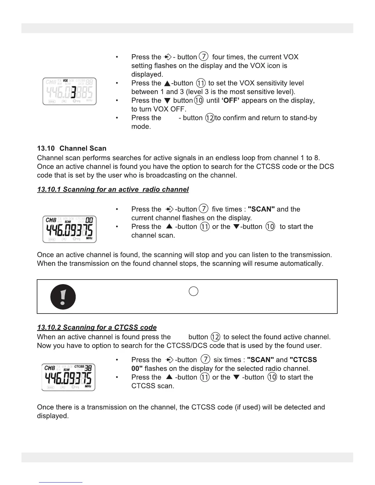 Major tech MTD90 - Channel Scan; Scanning for an active_radio channel; Scanning for a CTCSS code