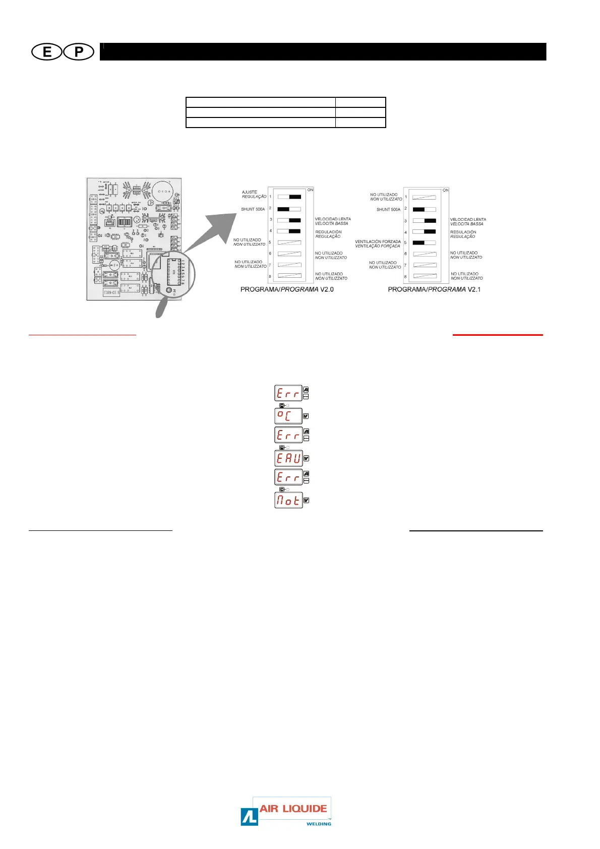 Los valores ajustados en fábrica para el pregás y el postgás, así como el antipegado son : Os valores regulados na fábrica para o pré-gás e o pós-gás e o anti-colagem, são :
