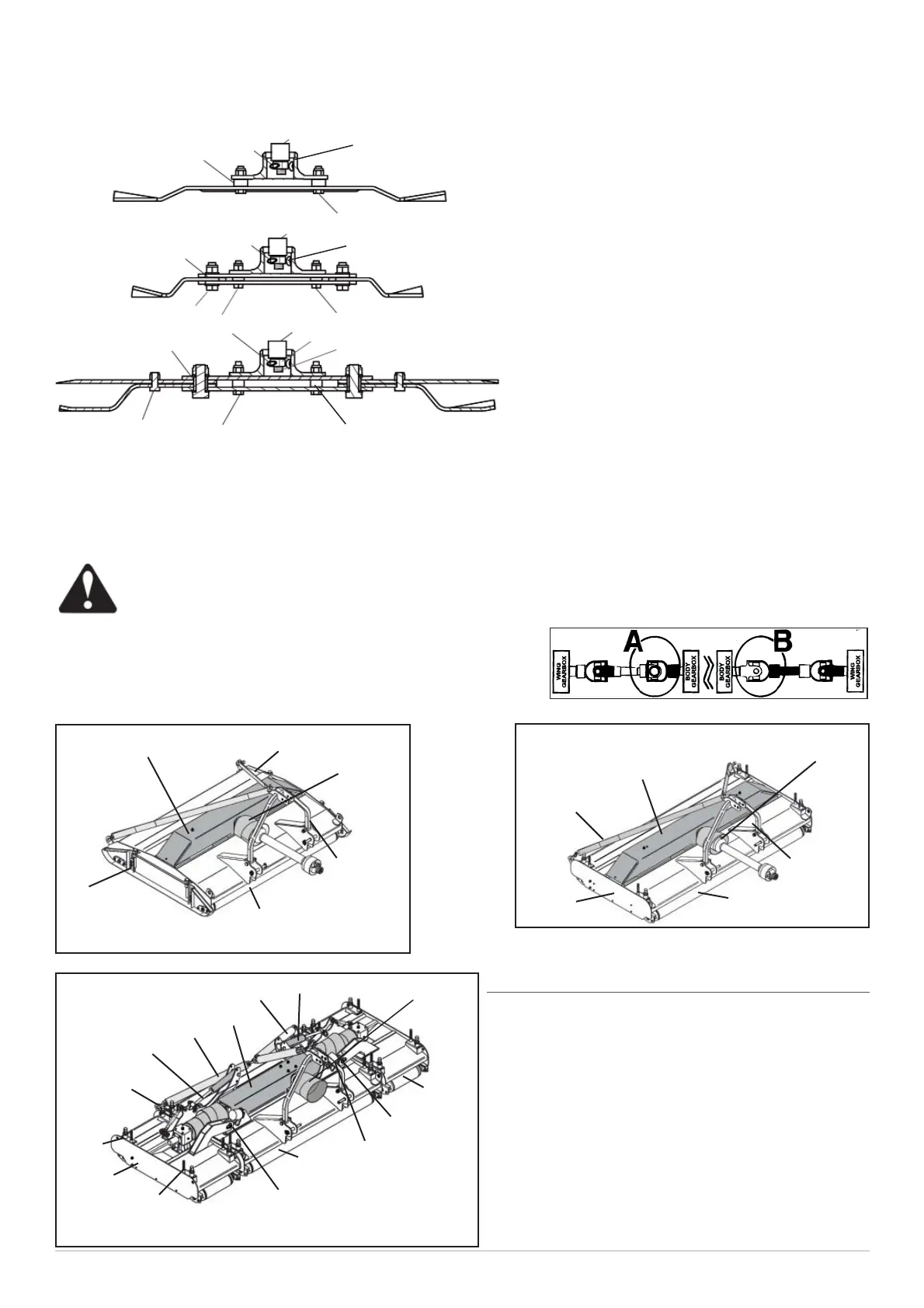 2. Grease the PTO shaft universal joints, drive shaft bearing and carrying arm pivots.