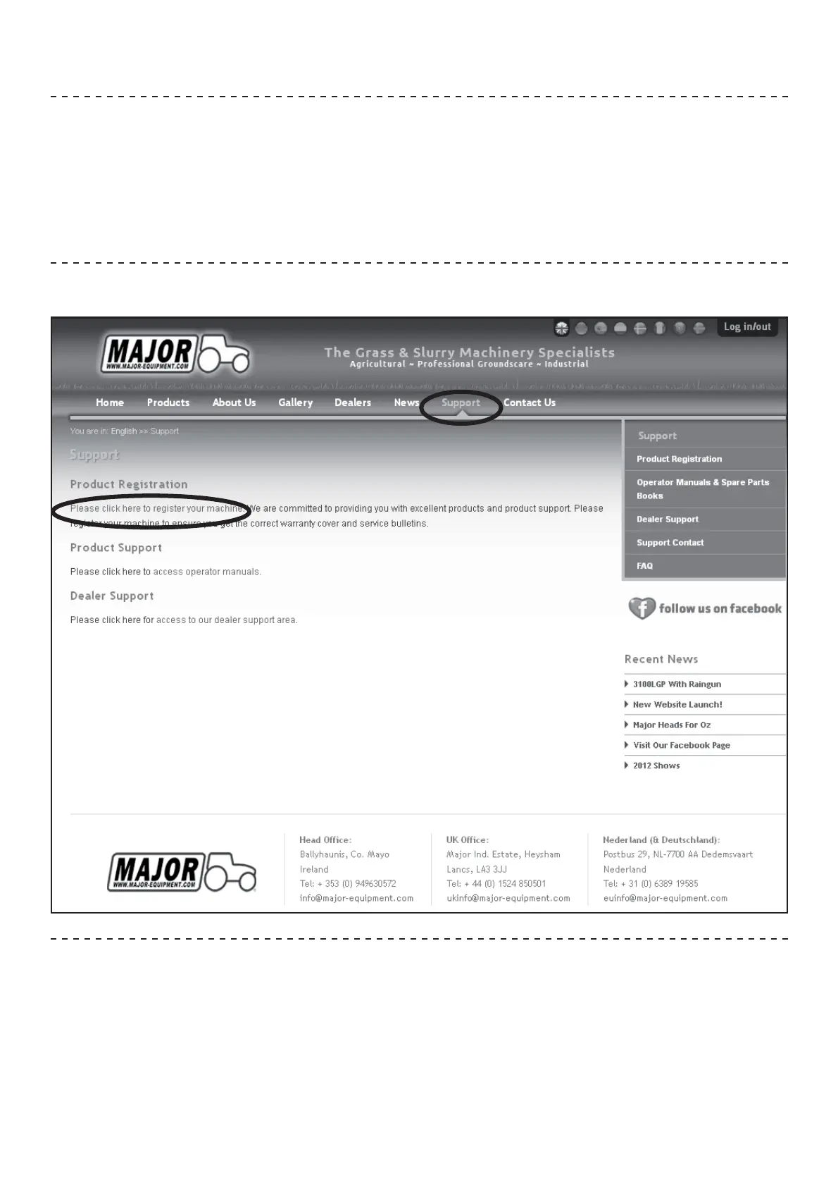 To register your machine for warranty, please go to the support section of our website www.major-equipment.com and enter your