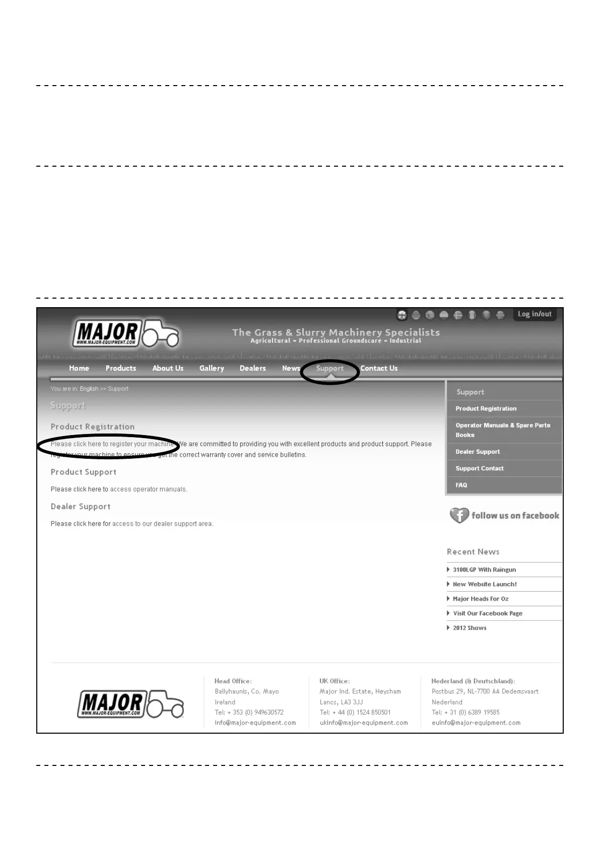 To register your machine for warranty, please go to the support section of our website www.major-equipment.com and enter your