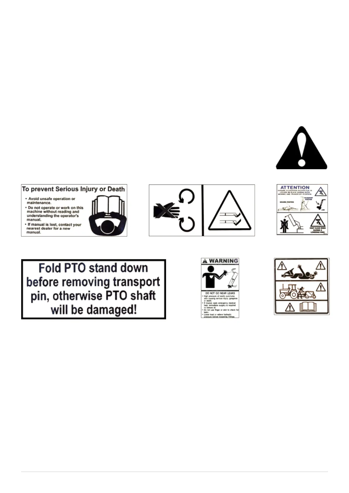 The machine safety labels shown in this section are placed in important areas on your machine to draw attention to