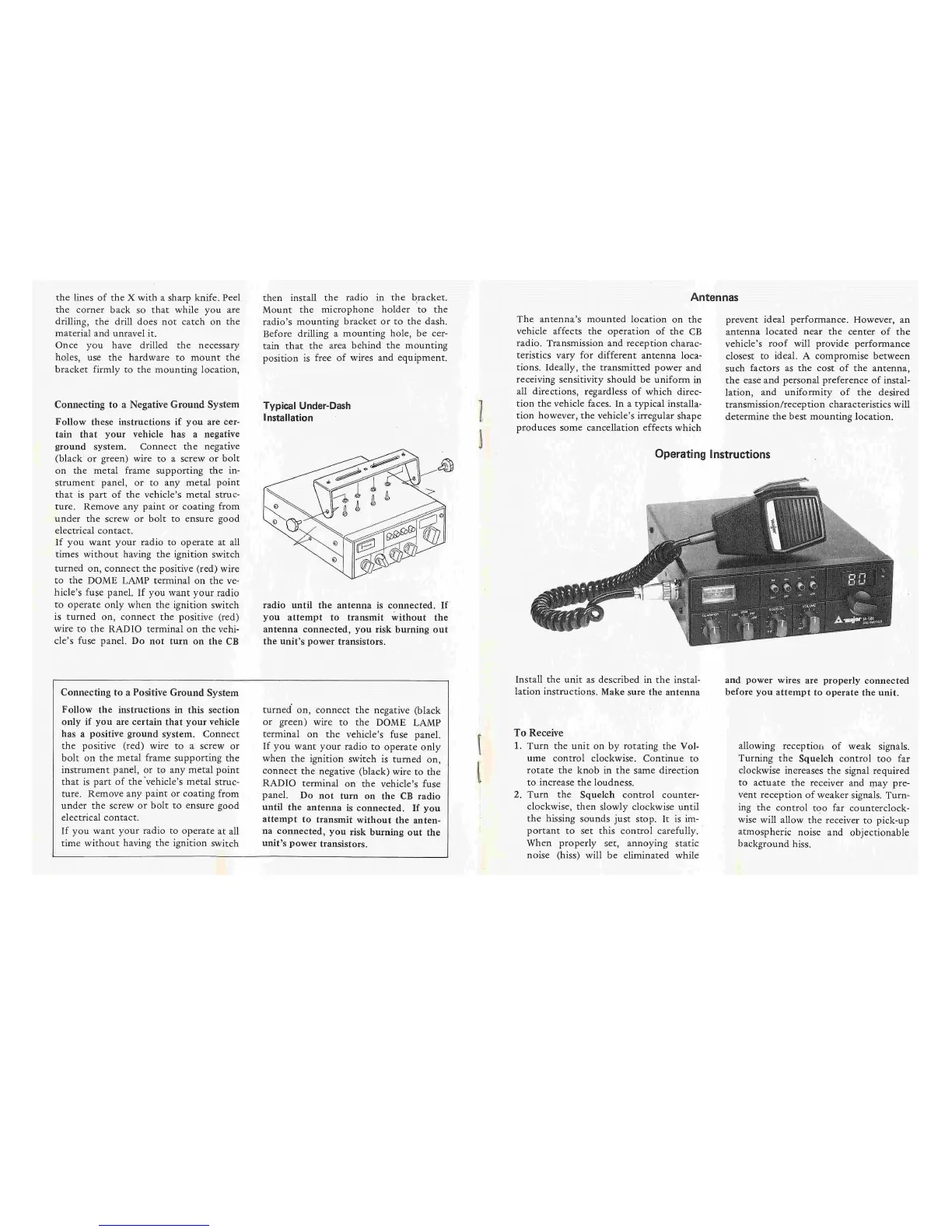 Major M-588 - Connecting to a Negative Ground System; Connecting to a Positive Ground System; Antennas; Operating Instructions