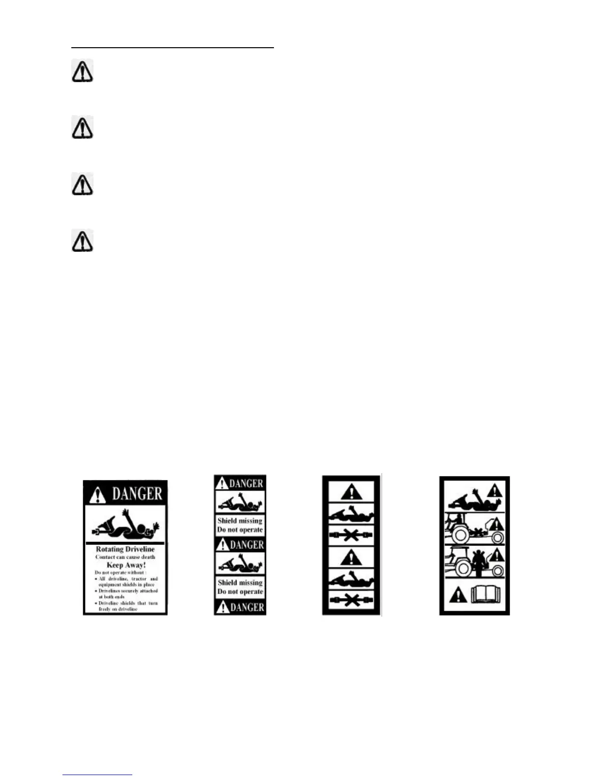 • A danger sticker on the driveline which becomes visible if the shield is damaged or missing (Fig. 3.2)