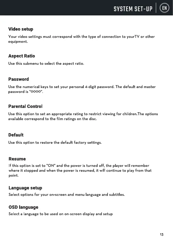 Usethis option to set an appropriate rating to restrict viewing for children.The options