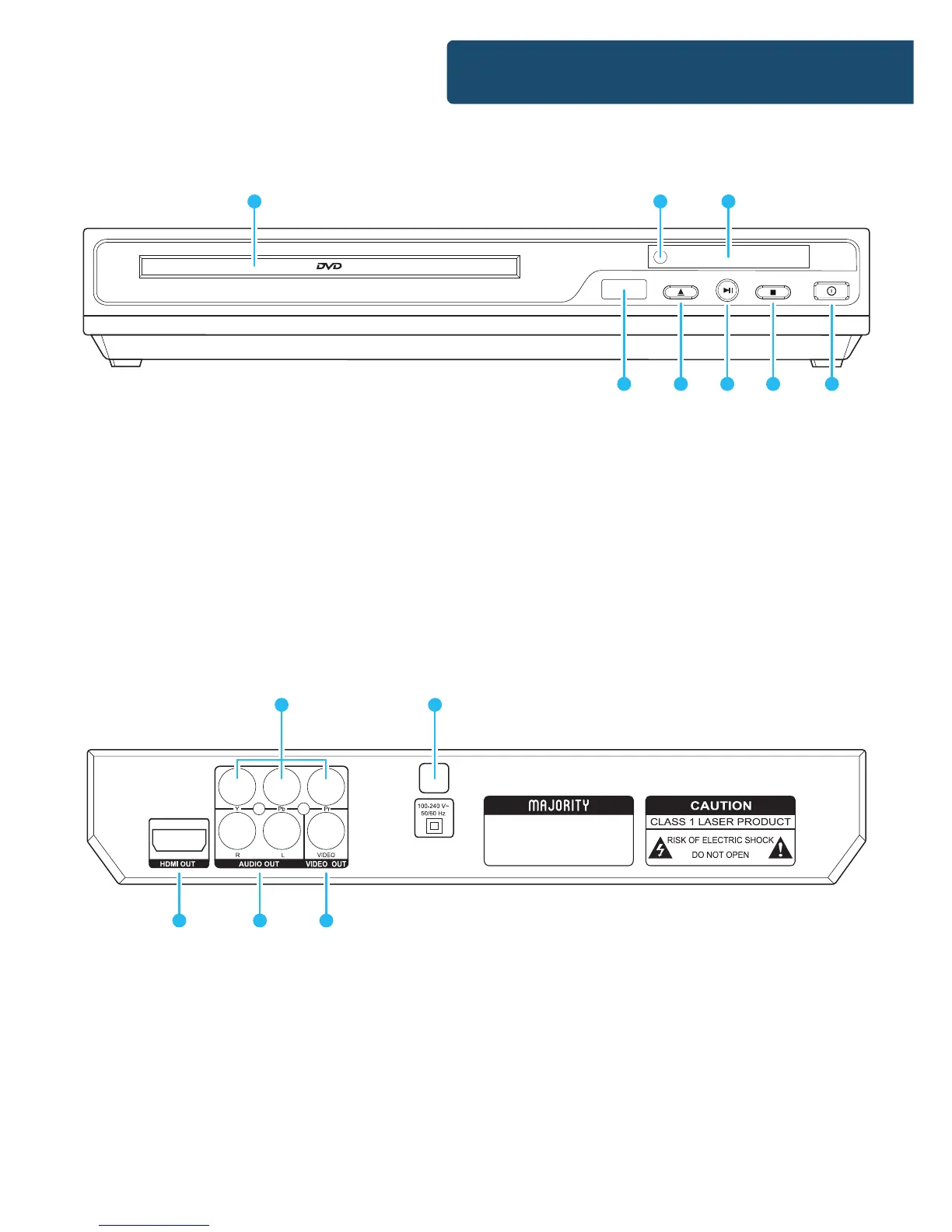 MAJORITY SCH-DVD-BLK - DVD Player Panel Layout; Front Panel Components; Rear Panel Components