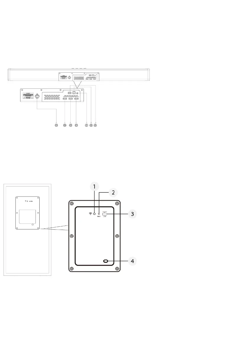 1. Indicador LED: indica el emparejamiento entre la barra de sonido y el subwoofer (asegúrese de que tanto la barra de sonido como el subwoofer estén conectados a la