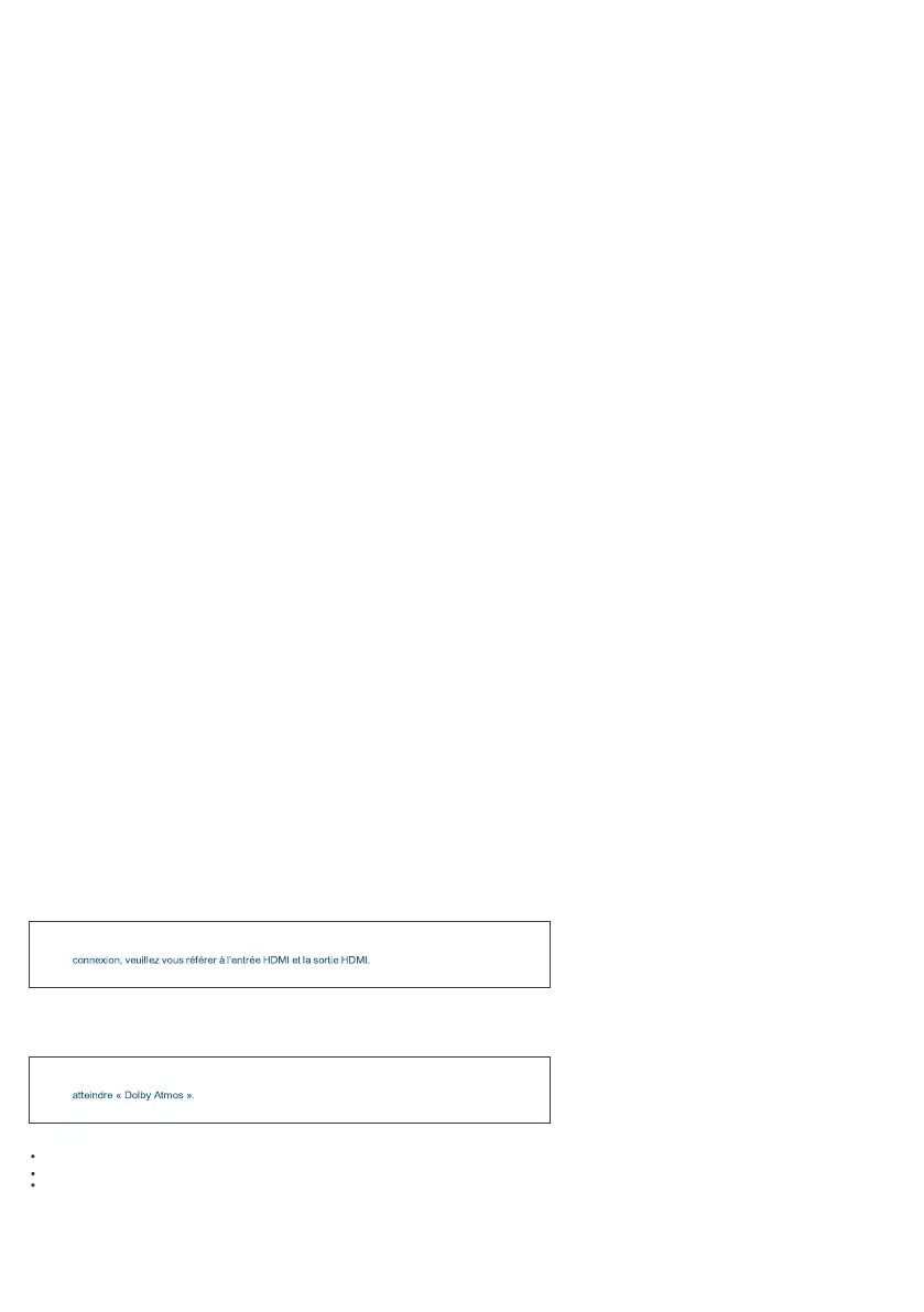 DOLBY ATMOS n'est disponible qu'en mode 'HDMI IN' et 'HDMI OUT' (ARC). Pour les détails de la