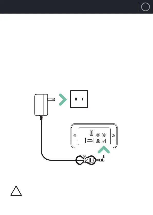 Connect the adapter into the soundbar AC Socket (Ref.13).