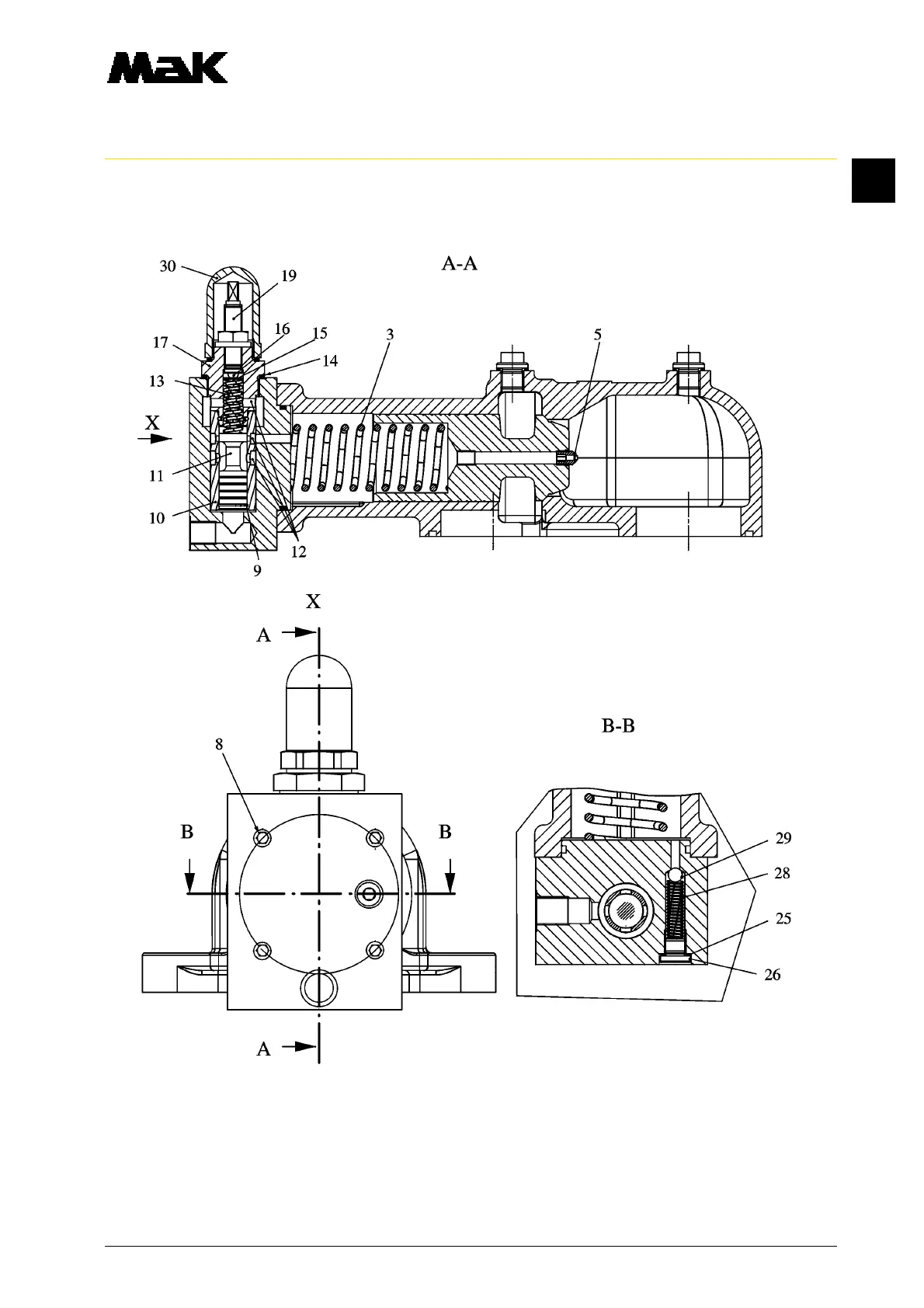 1.2.5 Remove the screw plug (26) of the pilot control unit (A-A) with the sealing ring (25),