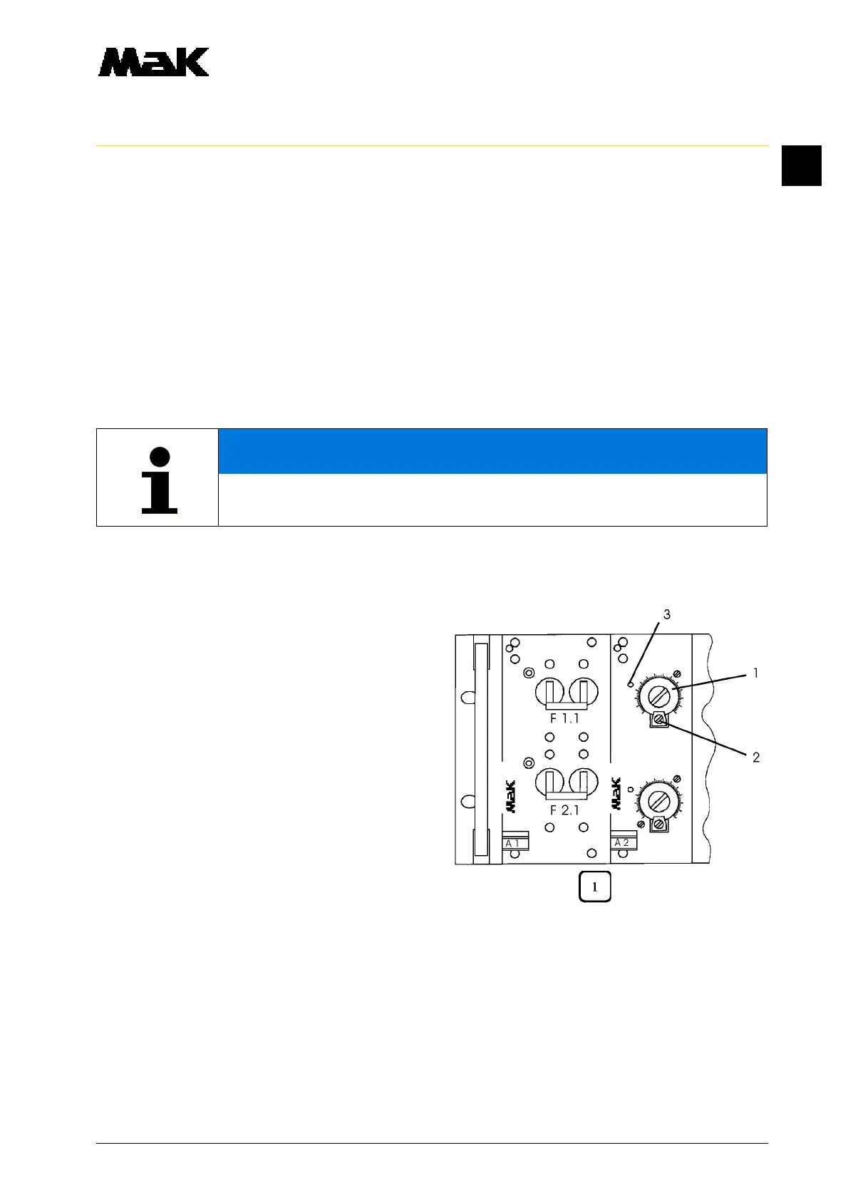 4. The automatic cut-out F 1.1 and F 2.1 on the plug-in card A1 in the rpm switch installation must
