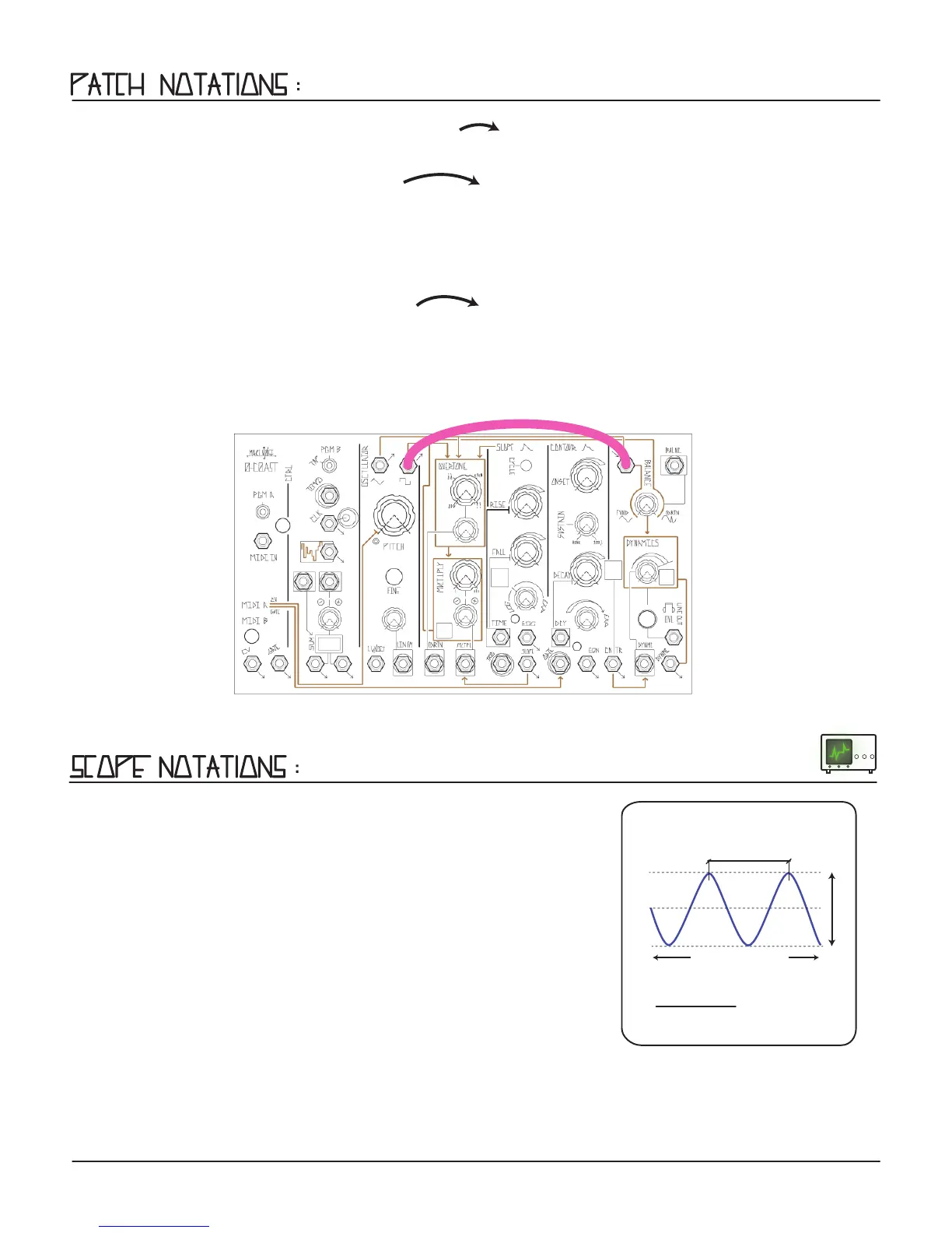 In this manual, patch instructions will be notated like this (the represents a patch cable connected to the two jacks):