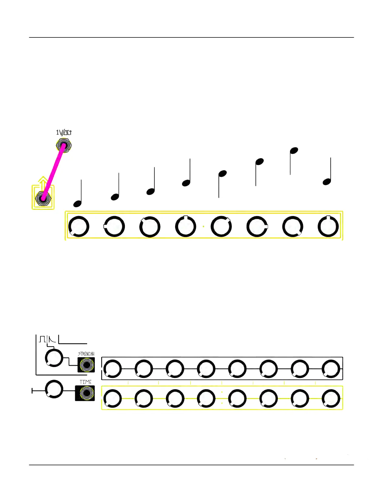 and an output jack. Together, Pitch, Strength, and Time represent the standard musical parameters of pitch,