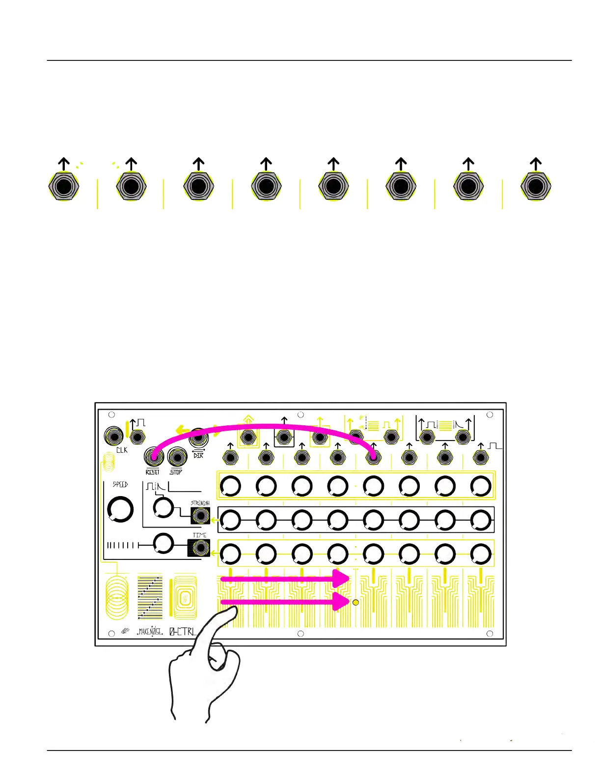 the active Step. The Step Gates are useful for patching to the Gate inputs of the 0-CTRL (see below) to change