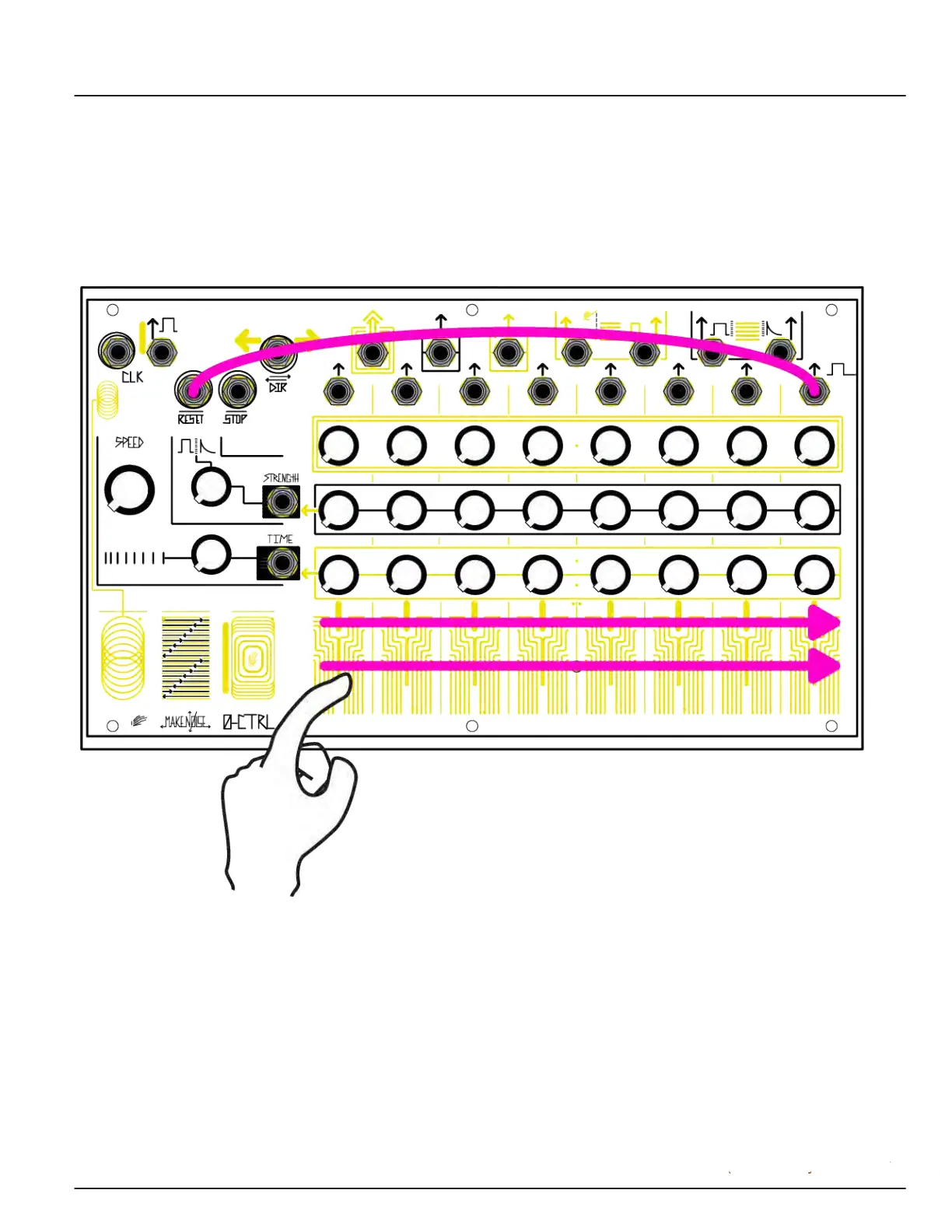 With sequence running, patch Step 8 (or any Step) Gate to Reset Input. Touch the plate of the stage