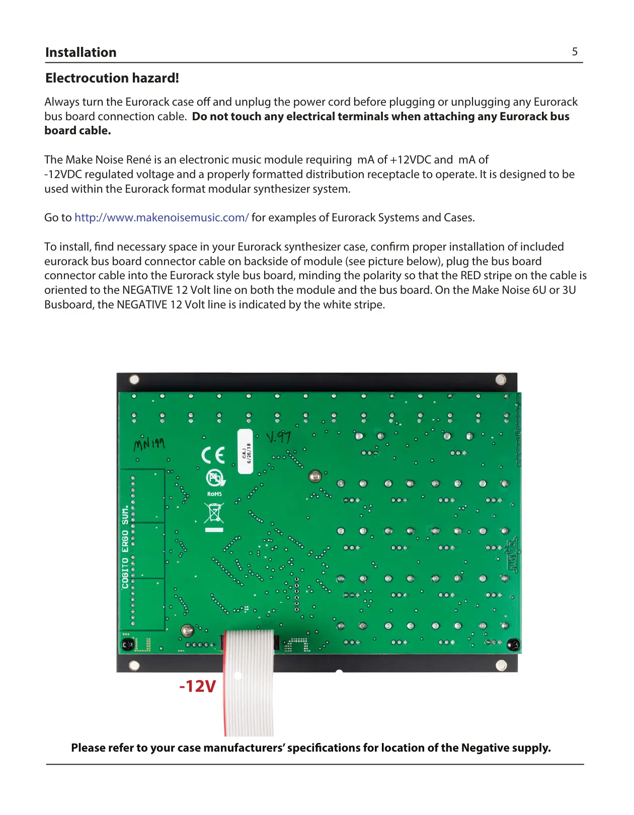 bus board connection cable. Do not touch any electrical terminals when attaching any Eurorack bus