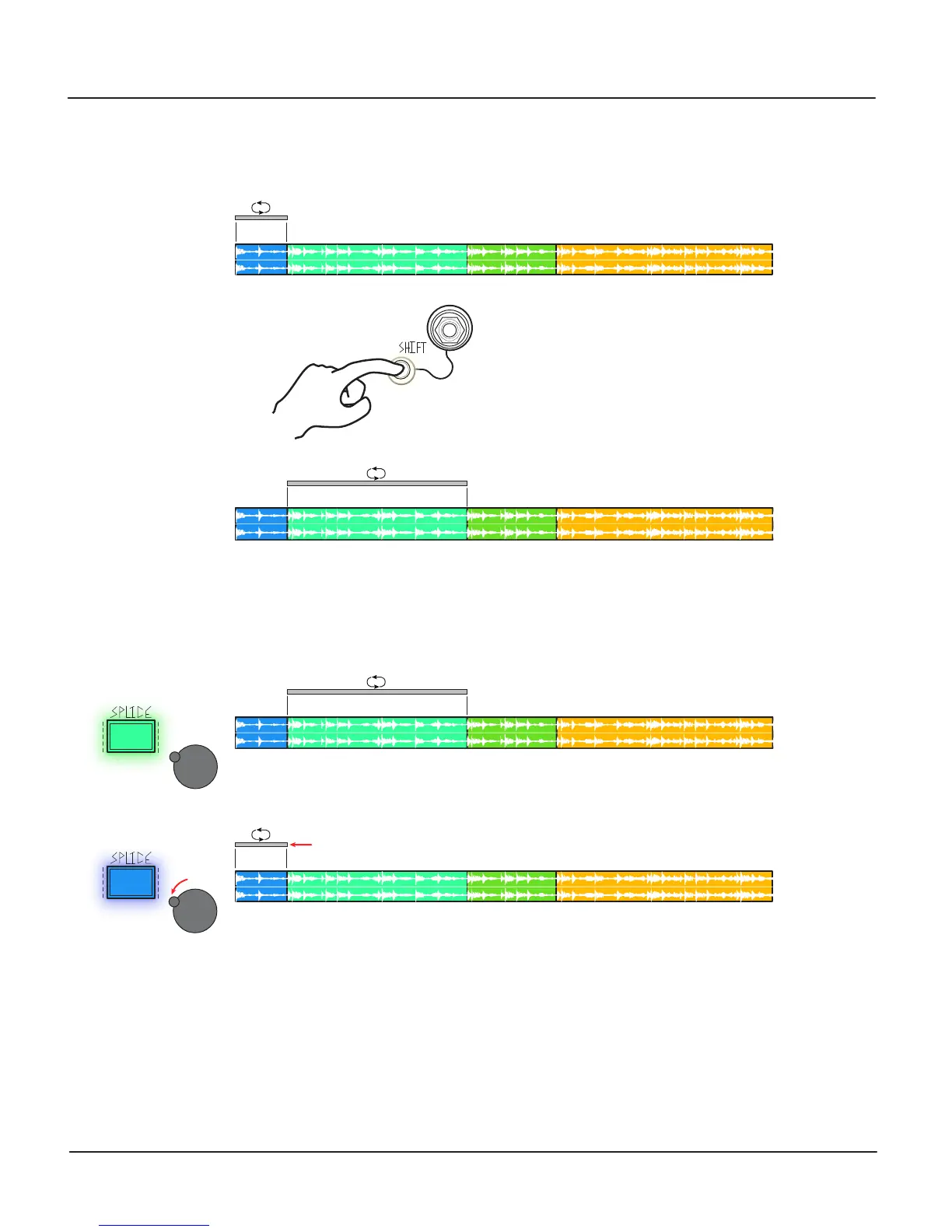 The Shift Button and/or Gate Input can also be used to Shift from one Splice to the next. Note: Organize Panel Control always