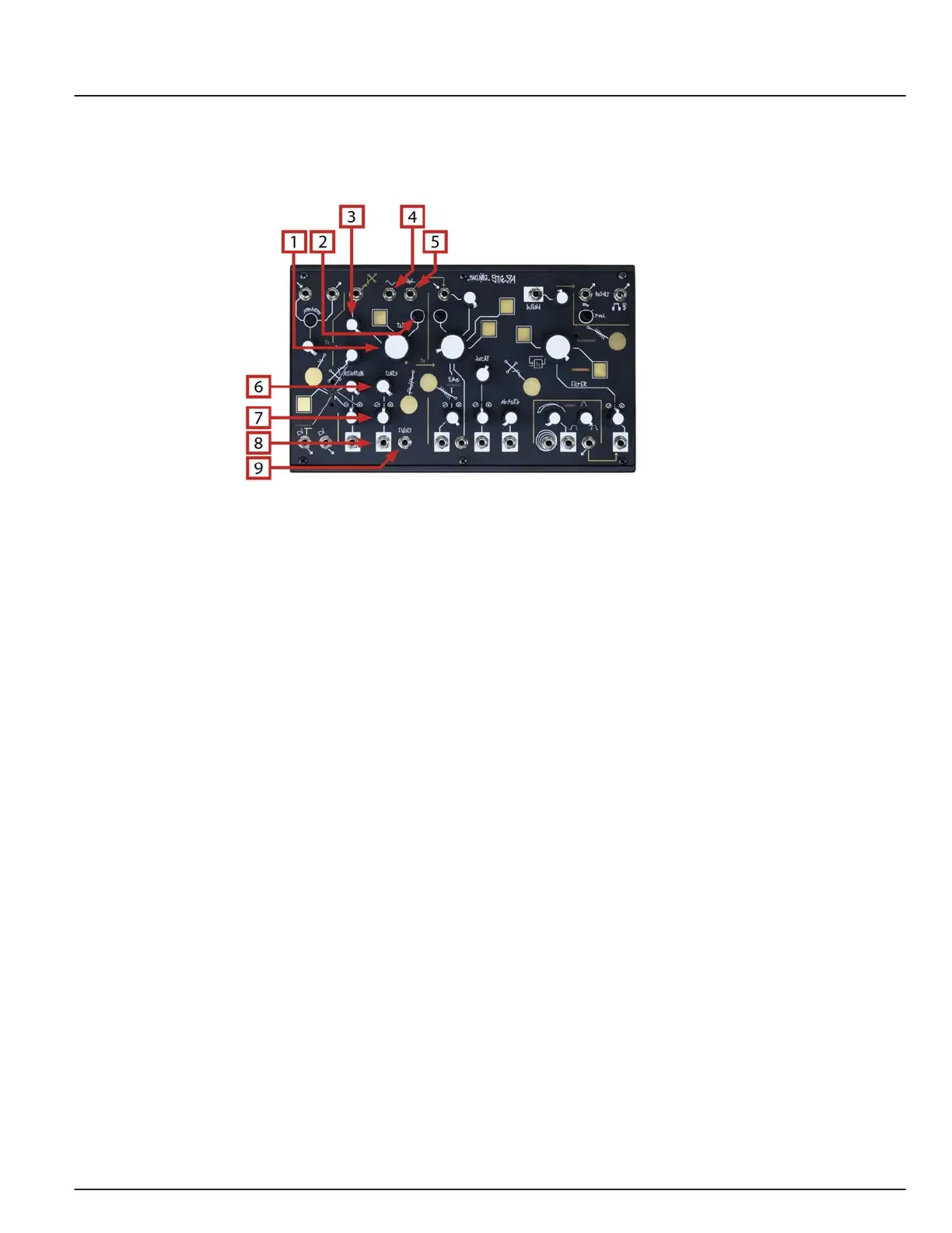8. Tones CV In: Direct Coupled, bi-polar CV Input for Tones, range +/- 10VDC.
