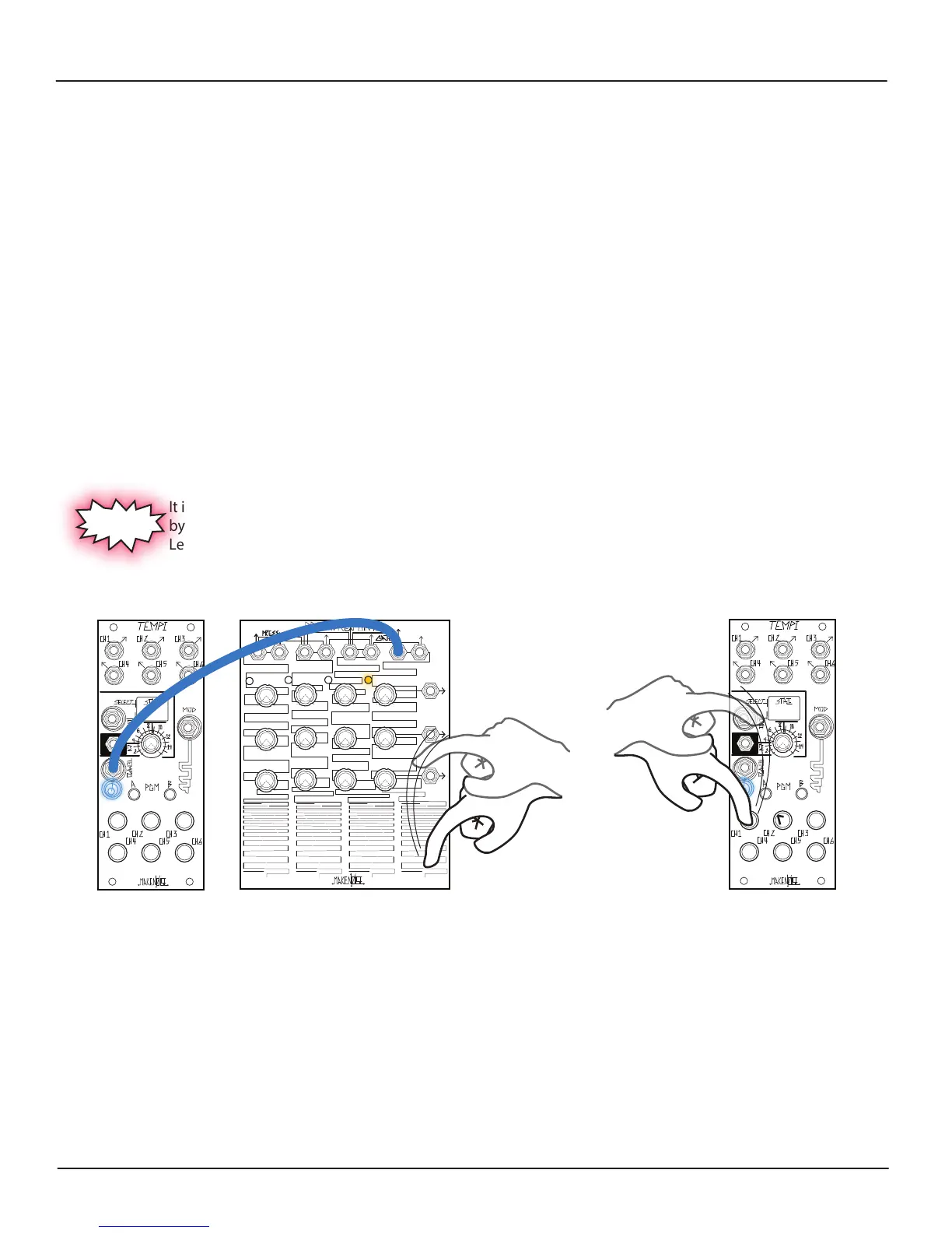It is possible to tap the Leading Tempo by patching a Gate Output, for example, from the Pressure Points, to TEMPI’s Tempo