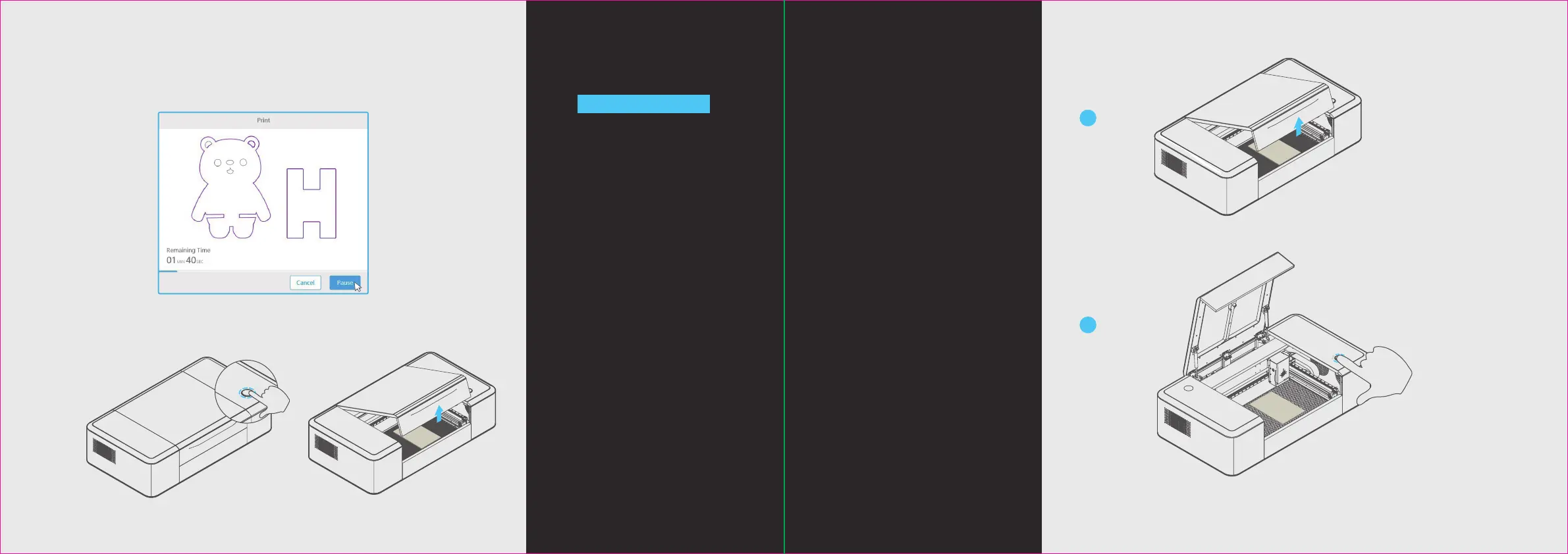 Laserbox to pause the task. Press