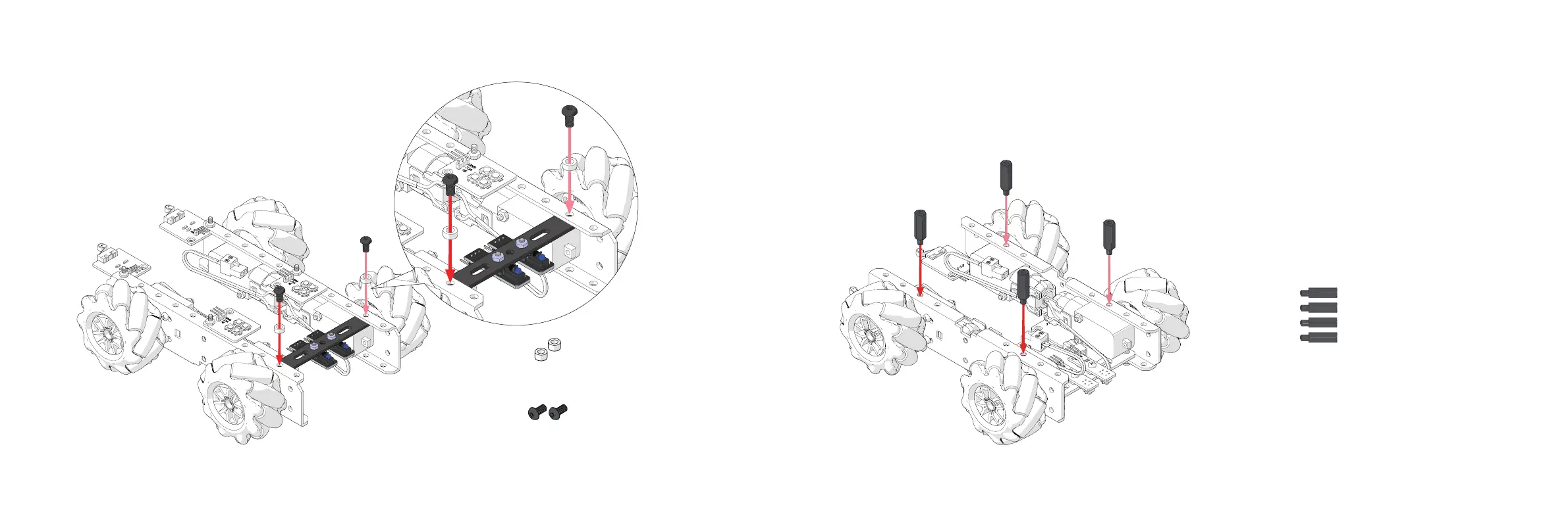 Makeblock mBot mega - Mount Brackets and Standoffs; Mount connector bracket to motor brackets; Mount nylon standoffs M4*20 to motor brackets