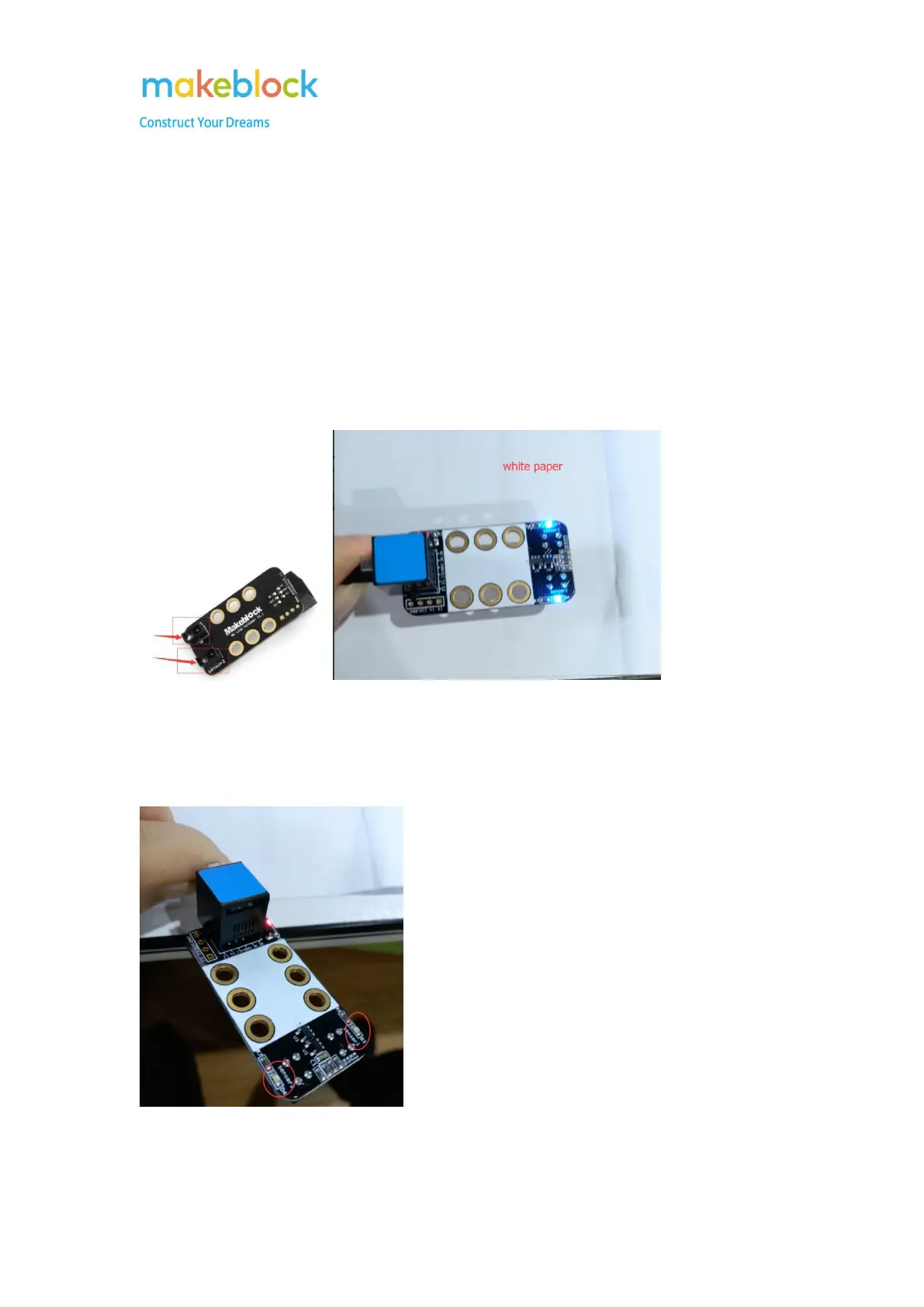 Put the two sensors of the Me Line follower above (Detection range: 1~2cm) a white desk or