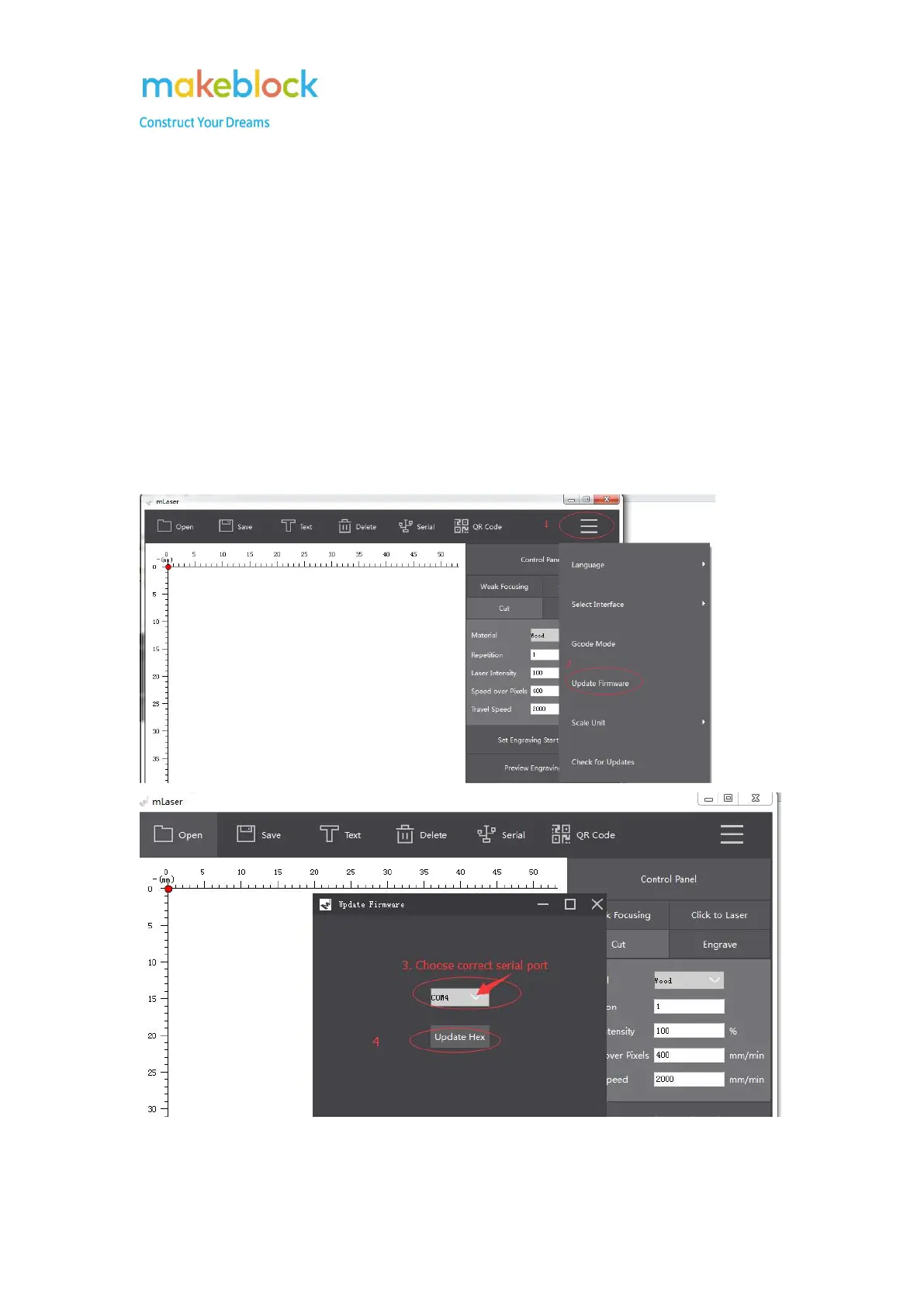3. Upgrade firmware for it with mLaser software as below picture.