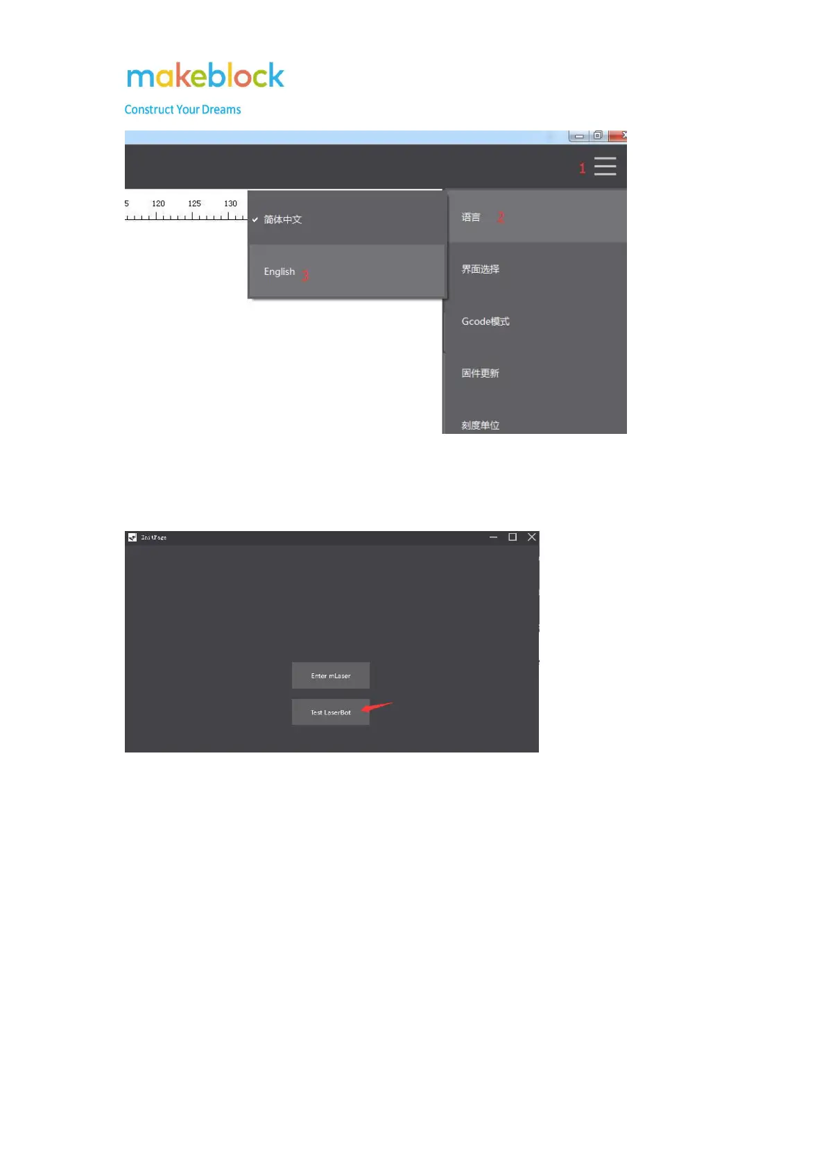5. Close mLaser and reopen it. You will find the menu is in English, and you could test LaserBot