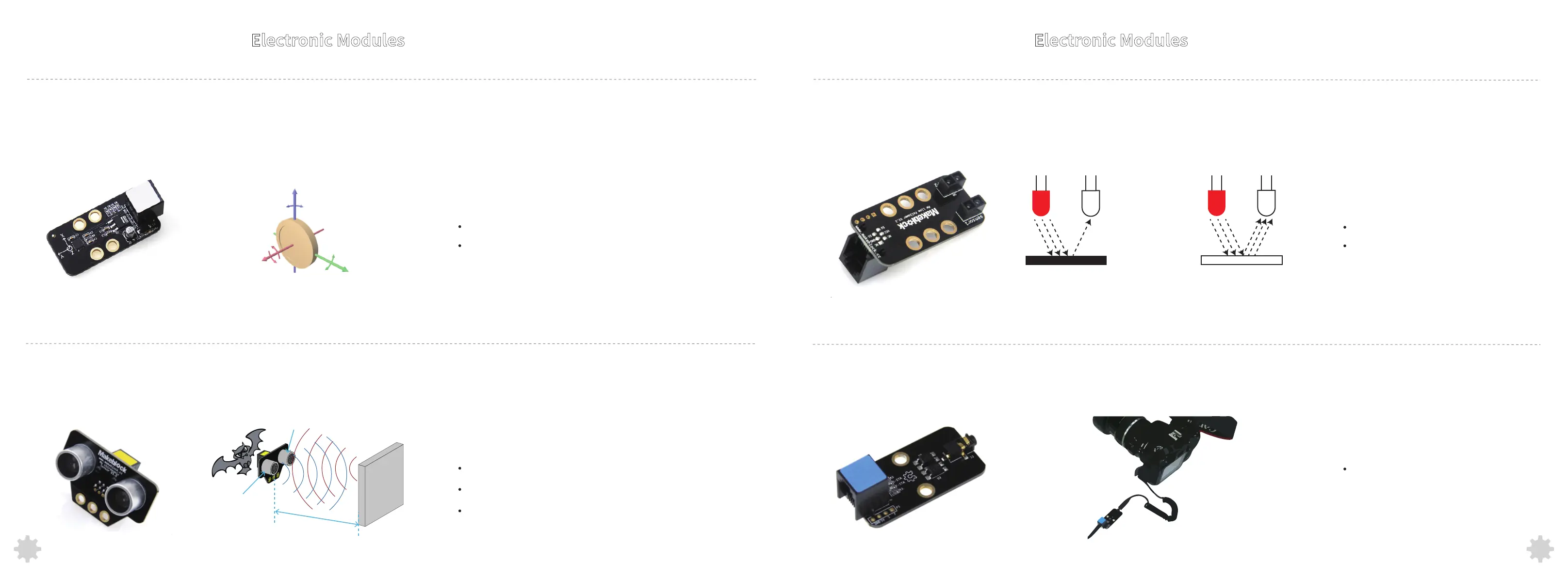 Ultrasonic module is a kind of electronic module to measure distance, and the measurement range is 3 cm to 400 cm. It is used for obstacle avoidance car as well