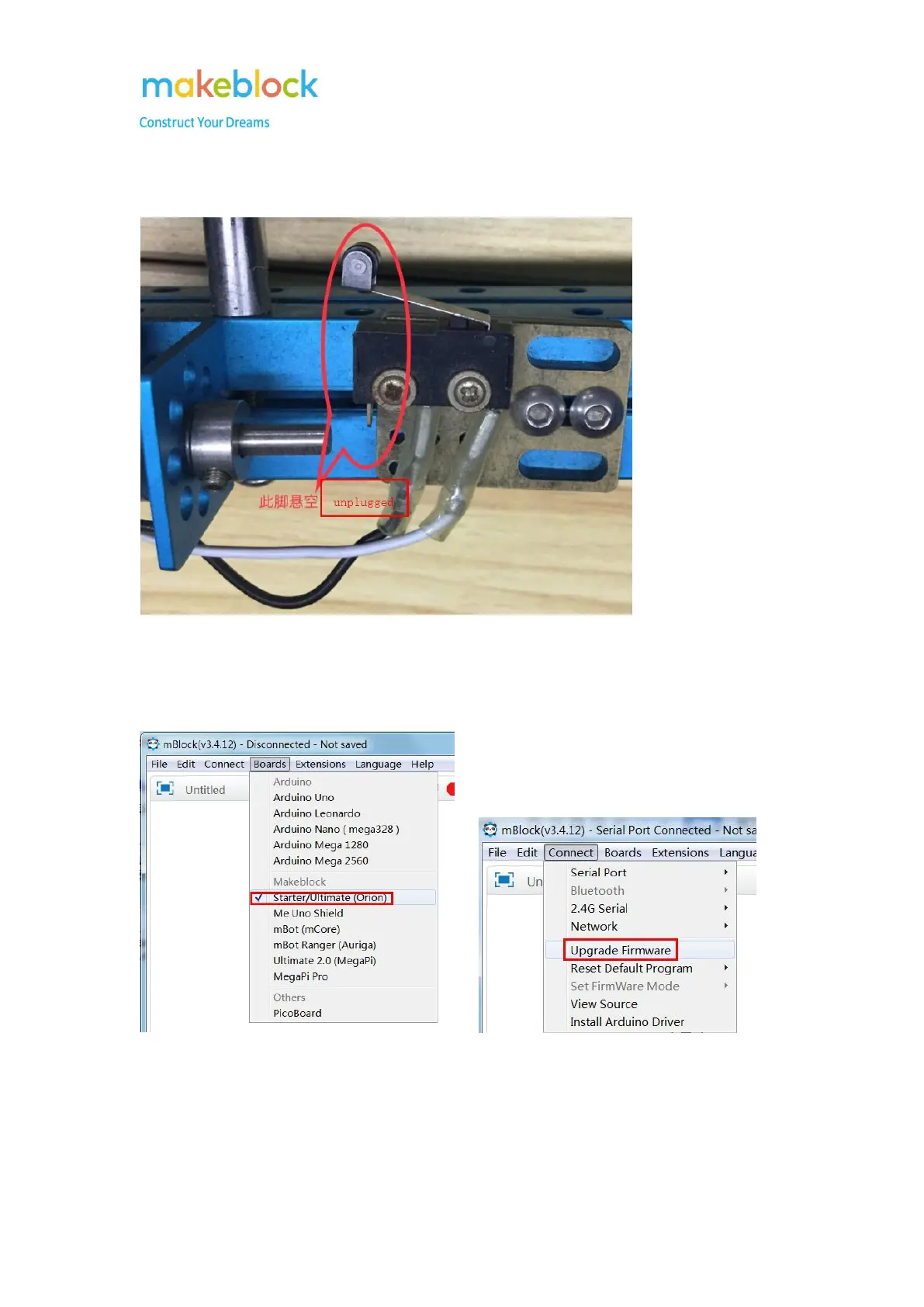 3. Test limit switch itself in mBlock software: connect Orion in mBlock 3->update