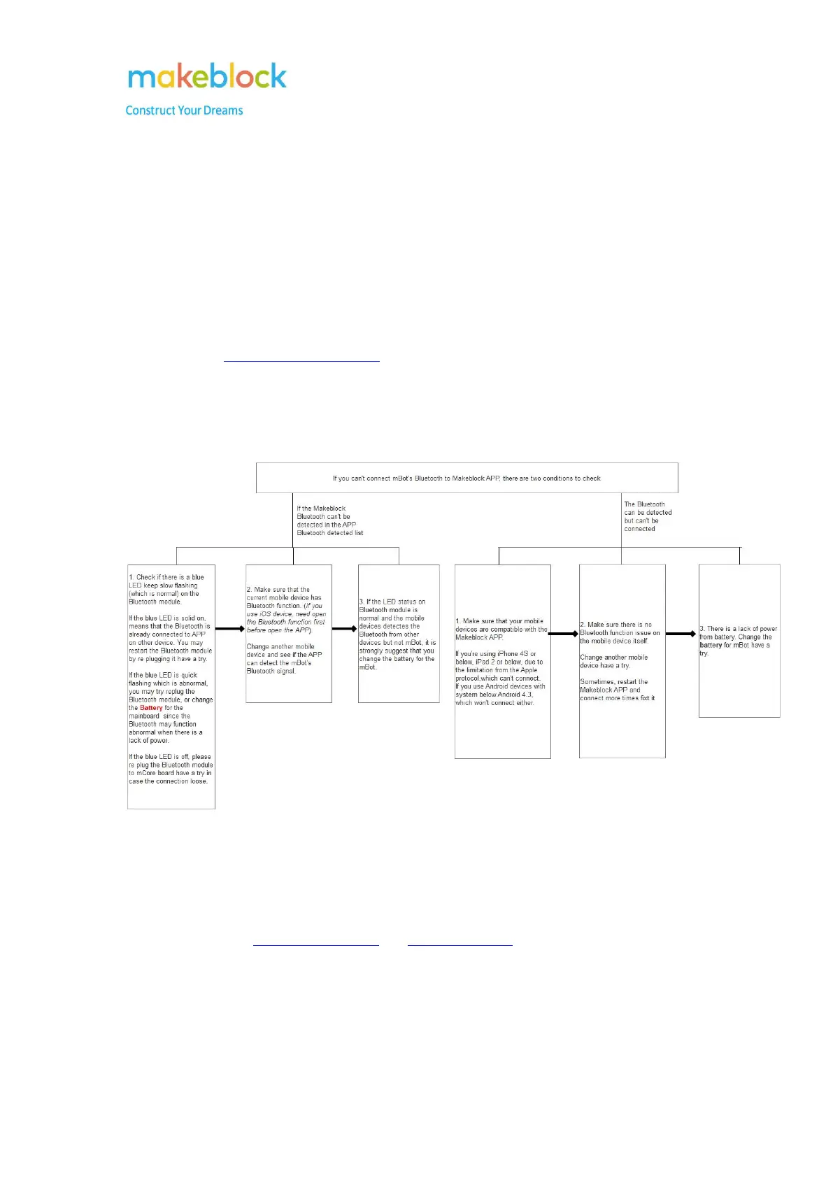 If you find Bluetooth cannot be connected to Makeblock App, please refer to below chart to do