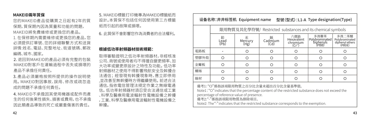 Note2: The“-”indicates that the restricted substance corresponds to the exemption.