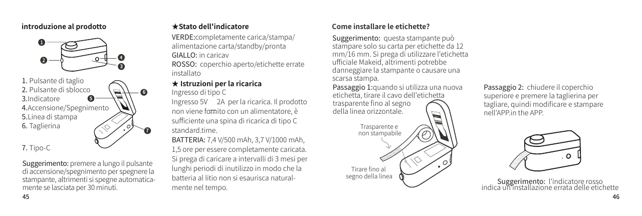mm/16 mm. Si prega di utilizzare l'etichetta