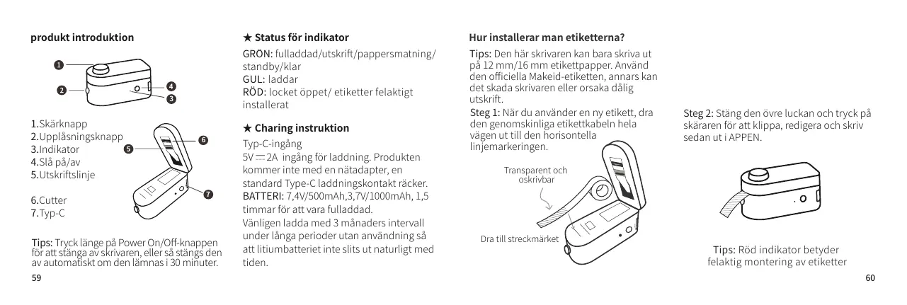 GRÖN: fulladdad/utskrift/pappersmatning/
